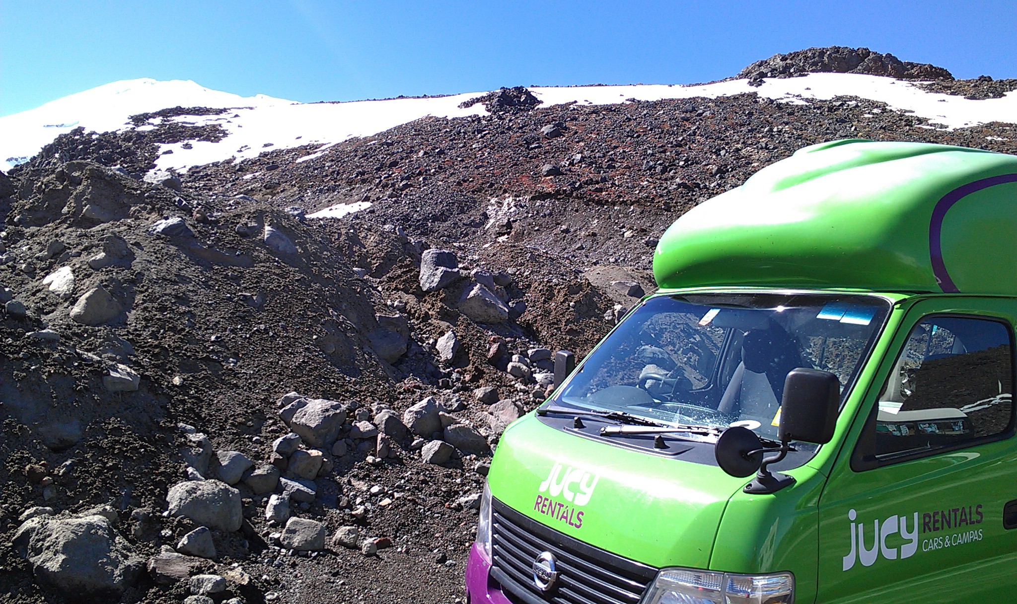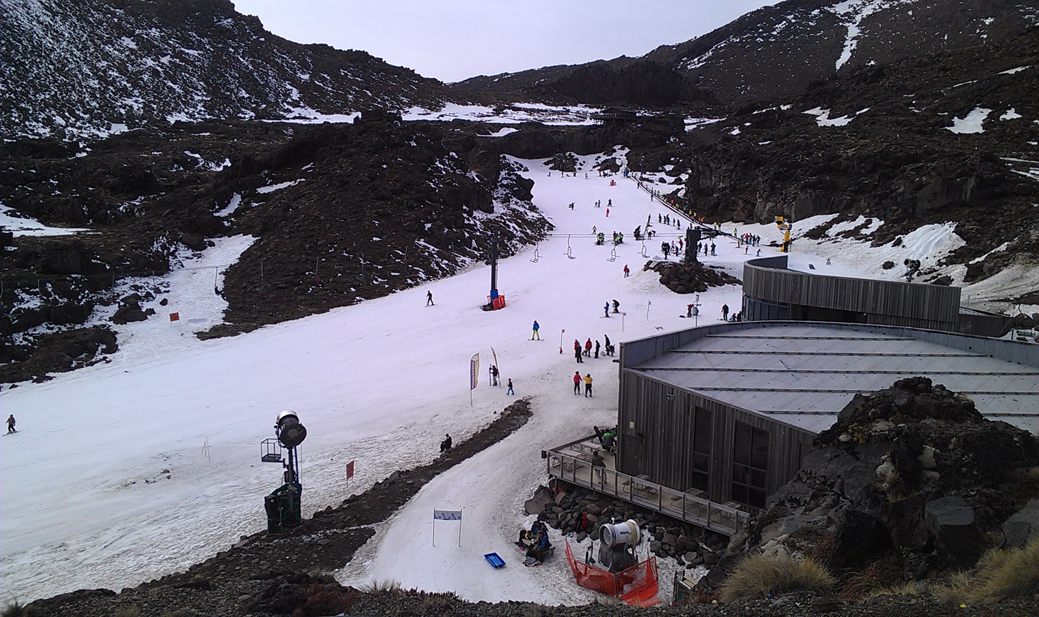 Mt Ruapehu 是東加里羅國家公園的一部分,下面有幾個滑雪場,最主要的是Turoa 與 Whakapapa 兩個。我們所住的Ohakune就在 Turoa 山下,上山只要20分鐘,但距離 Whakapapa要將近50分鐘。原本的行程是一天滑雪,一天參加著名的 “東加里羅 Crossing"。不過露營地的服務人員說目前還有殘雪,東加里羅 Crossing必須參加嚮導團,約要160紐幣左右,所以我們就決定滑兩天雪,一天Turoa,一天Whakappa。