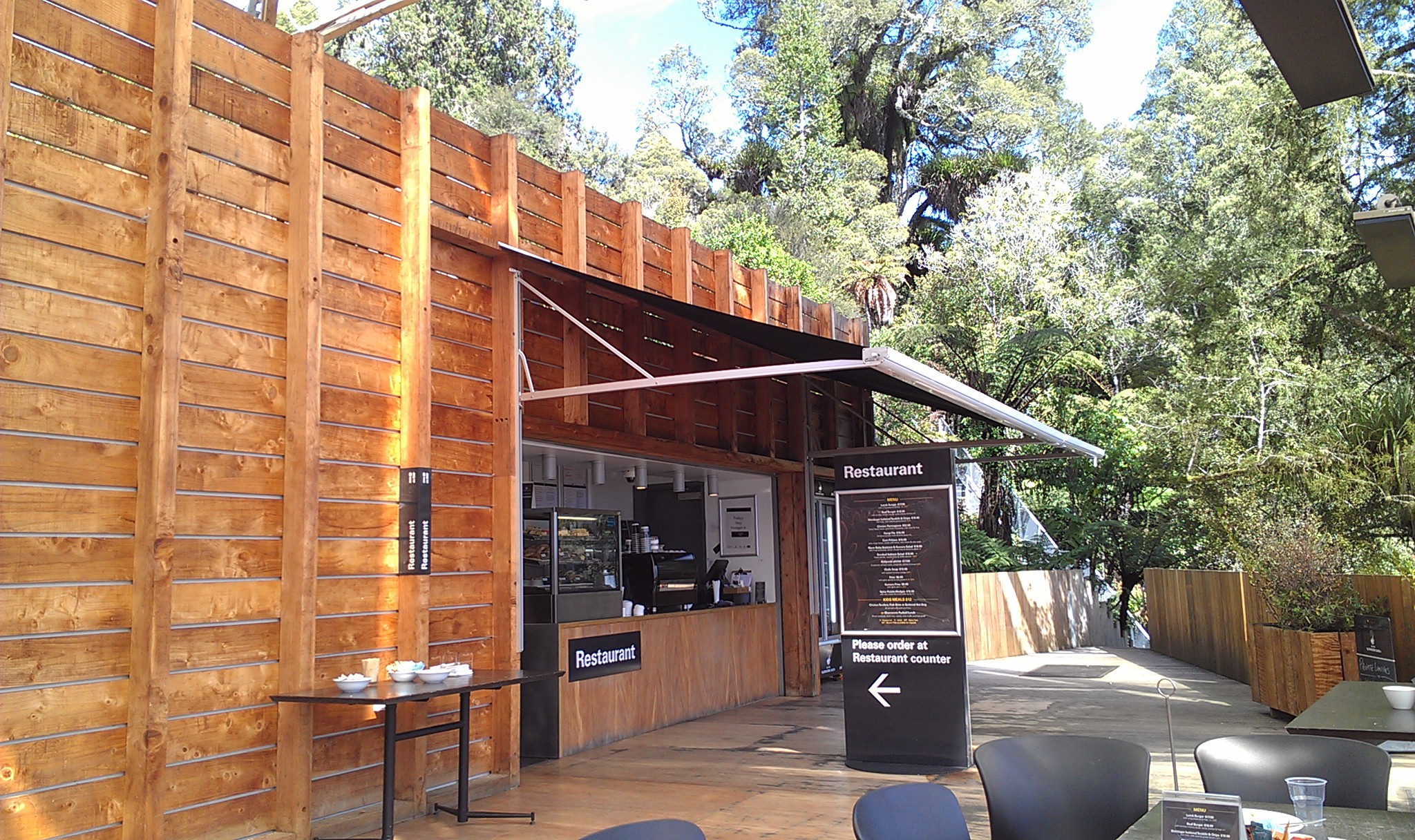 (下圖) 售票處與Waitomo Gloworm Cave蓋得很漂亮,有點螢火蟲翅的感覺。但是我們後來才知島這邊的螢火蟲跟台灣的品種不同。