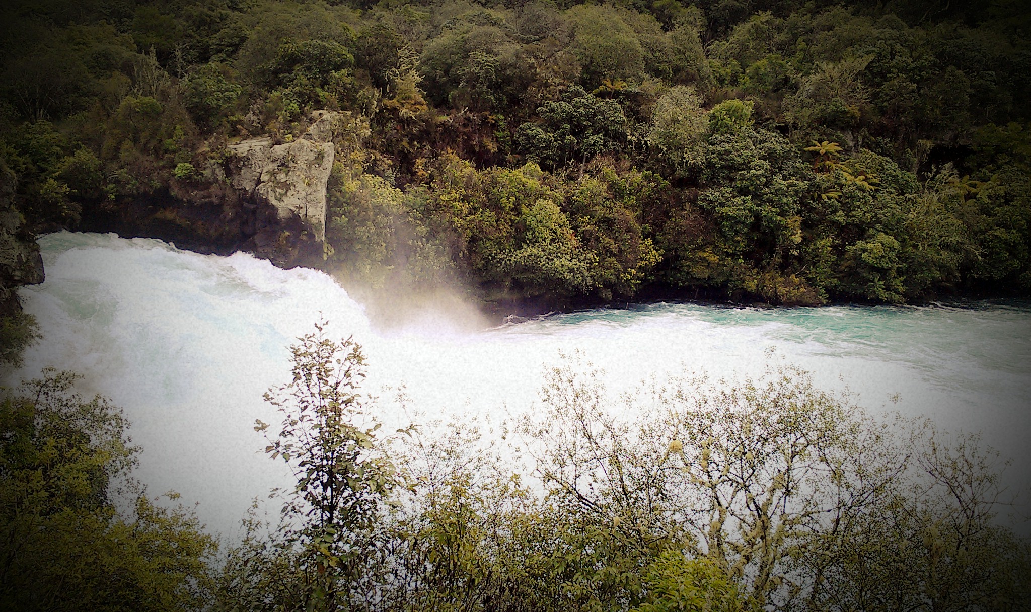 沿著公路北上,我們經過 Huka瀑布。這個瀑布並不以高度著稱,反而是地形(水道縮減)造成視覺上的強烈感與顏色上的改變。相對於東加里羅,這條由陶波到羅托魯瓦的道路,算是觀光路線,中國觀光團忽然又都出現了。