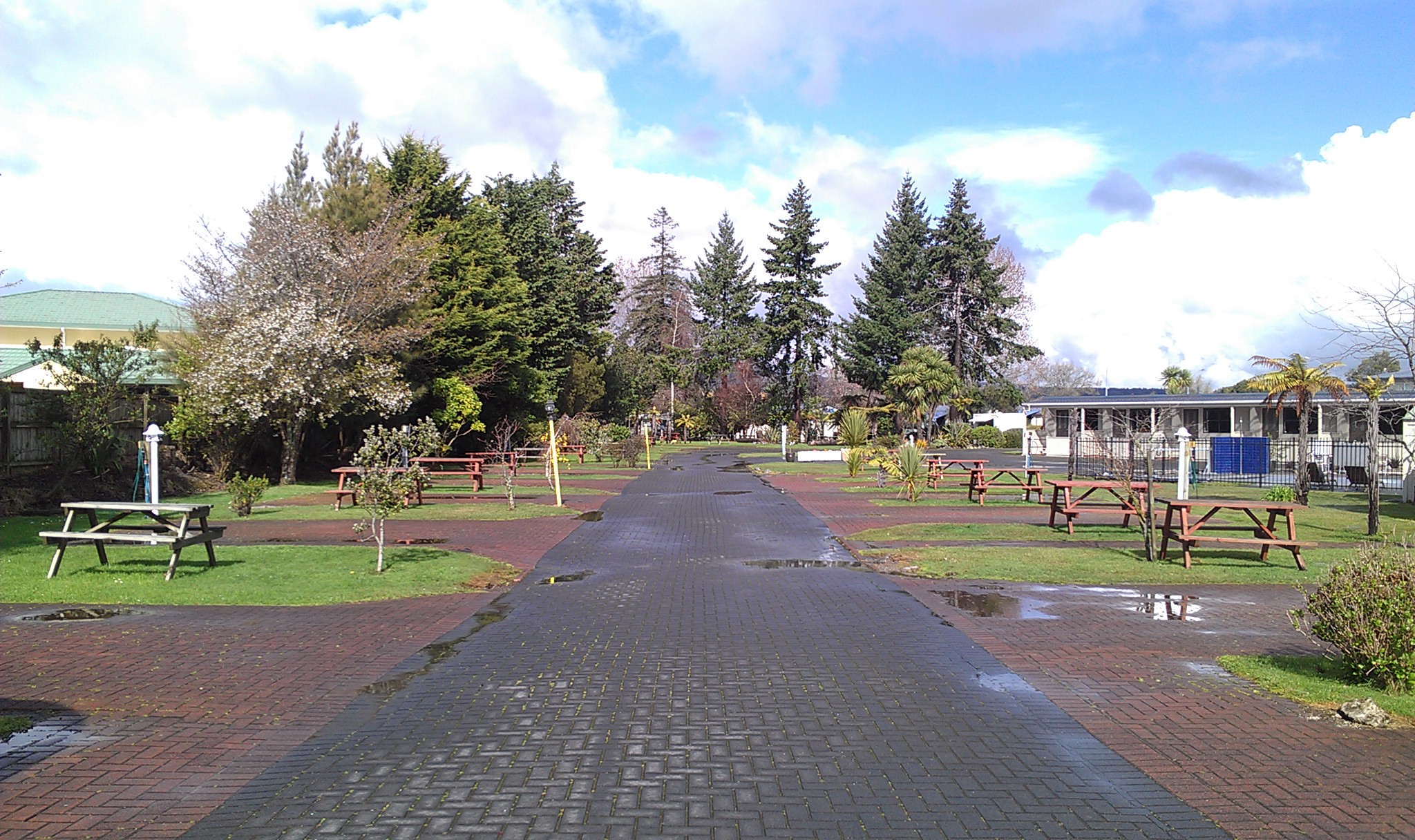 下午3點左右,我們就到達 Rutorua Top 10 Holiday Park 露營區。整個露營區還是空蕩蕩的(不過,到了晚上就滿了),天氣也稍微放晴。下了一整天雨,天公終於放晴了。