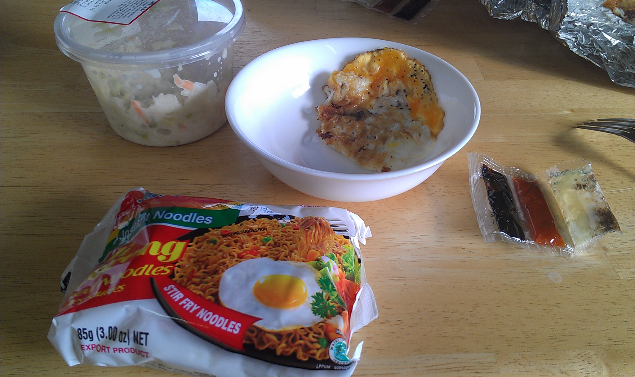 中飯有點晚,也吃得簡單。以前在澳洲念書時,常常吃印尼的泡麵 Mi-Goreng (因為是最便宜的泡麵),在這邊的超市也是一樣。早上我多炒了兩個荷包蛋來搭配。廚房還是維持高水準,爐具、烤箱、冰箱、洗碗槽一應俱全,且非常乾淨。用來煮泡麵算是殺雞用牛刀了。