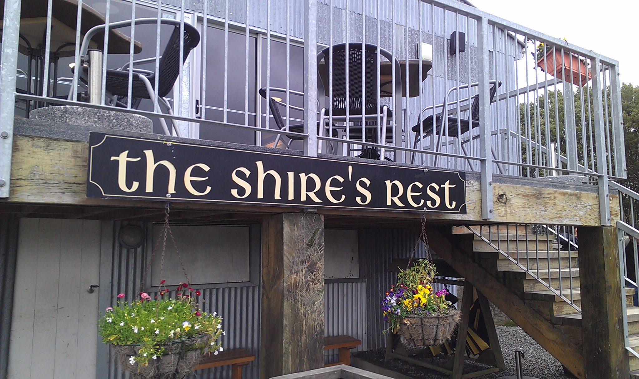 首先來到 Shire’s Rest,算是一個轉接點,由這裡轉車到拍攝地點,這邊也有些商品可以購買。拍攝地點參觀完後,也會回到這邊以便轉車回 Matamata。當天有幾個少年竟然買了一隻Gandalf用的魔杖,很興奮地在拍著照。