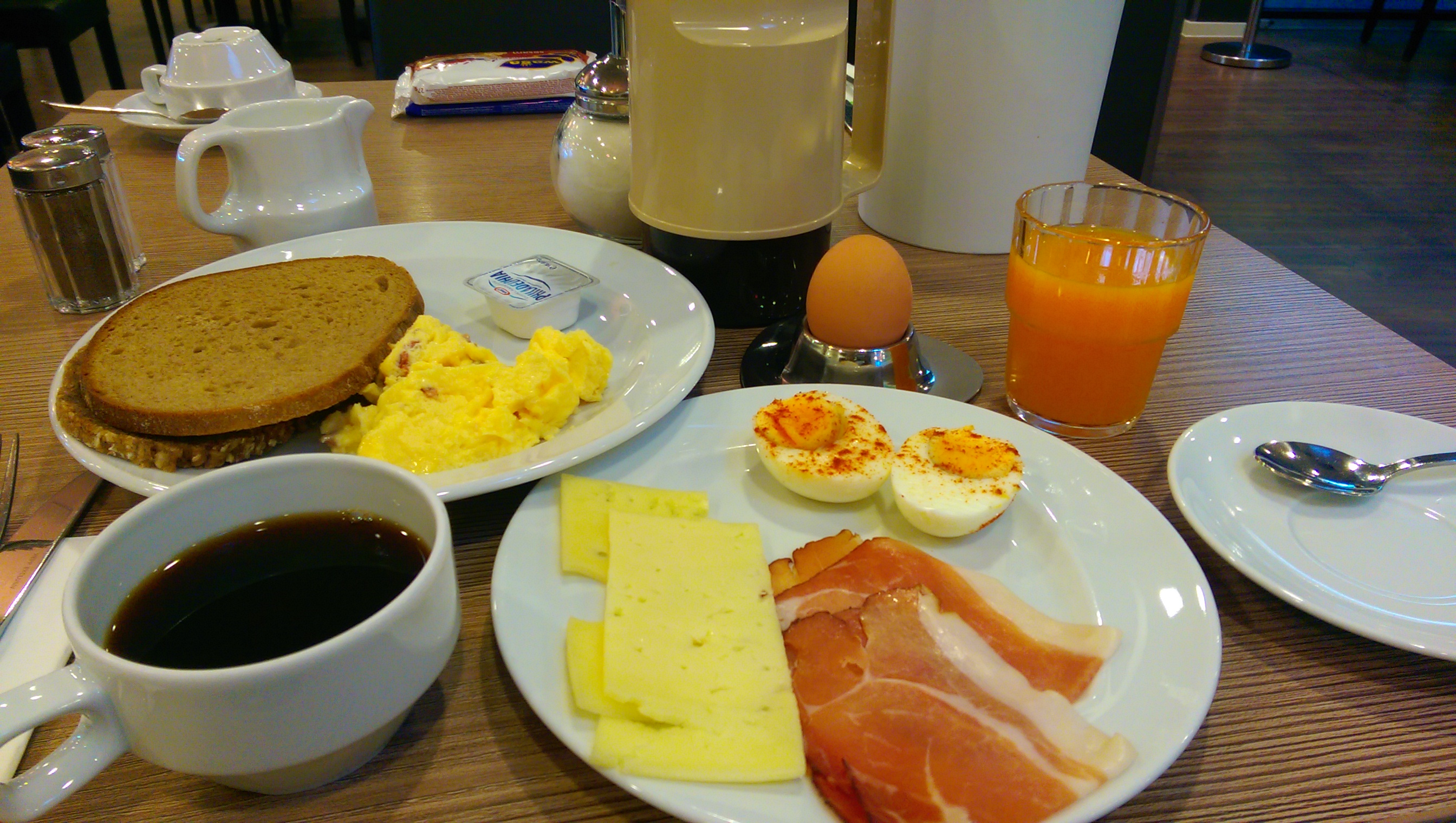 這次在漢堡的旅館在中央車站附近,不過走過去的過程有點讓人不舒服,流浪漢很多而且地上很多垃圾,難怪旅館的價格並不貴。旅館的早餐還不錯,歐式早餐都有不錯的火腿(帕馬森)跟起司,這家的咖啡也特別,是裝好一壺一壺的。