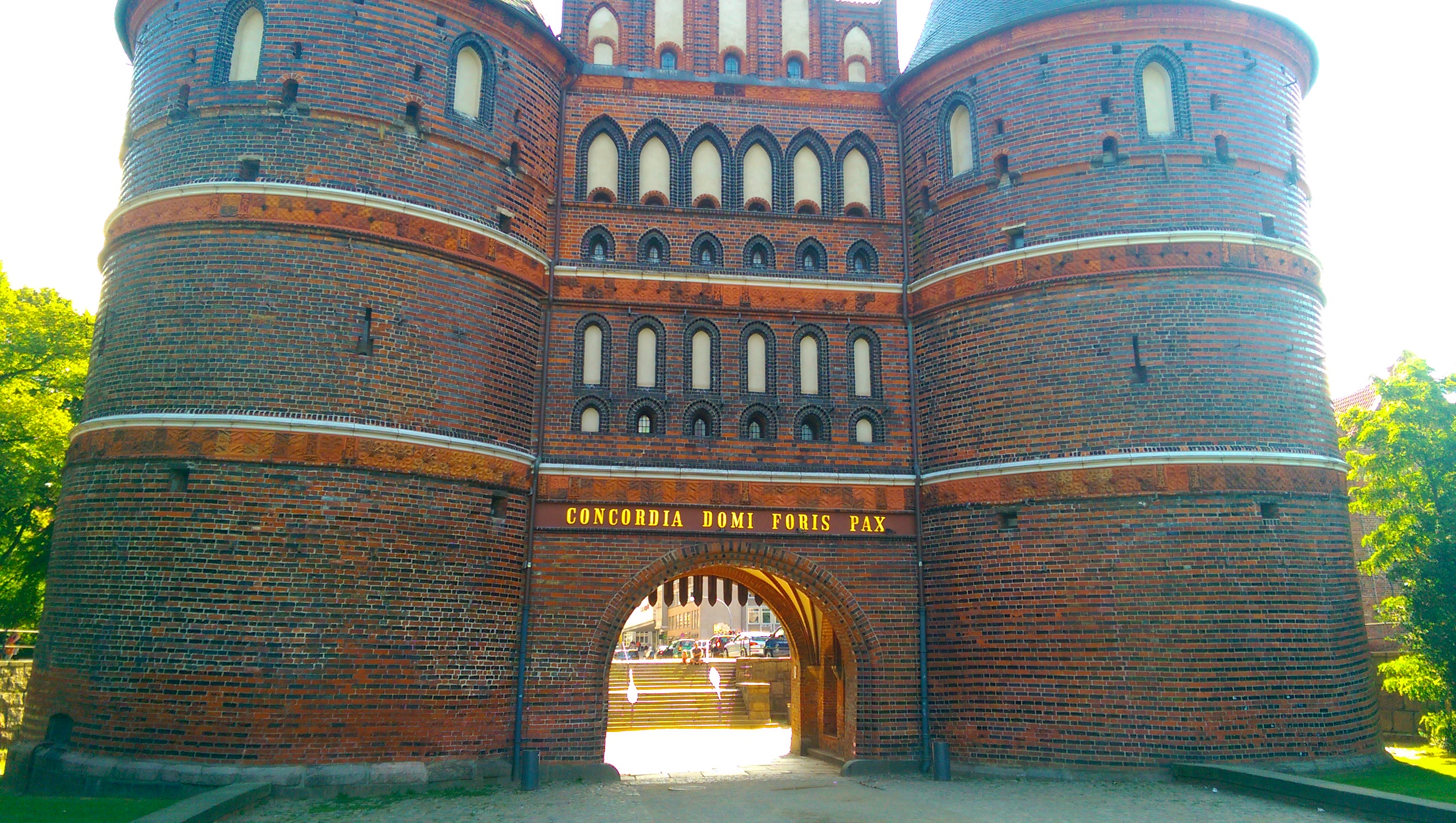 德國交通雖然方便,有時通票不能涵蓋的市內交通還是讓人頭痛,還好有的小鎮車站離老城區(一般景點的集中地)不遠,呂北克也是其中之一。老城區就在車站不遠處,而且是河中間的一個島。首先印入眼簾的就是有名的城門,經過時間的洗禮,建築建構已經有點扭曲,但是仍然可以想見當年的風光。沿著小巷走,經過了戲偶博物館。