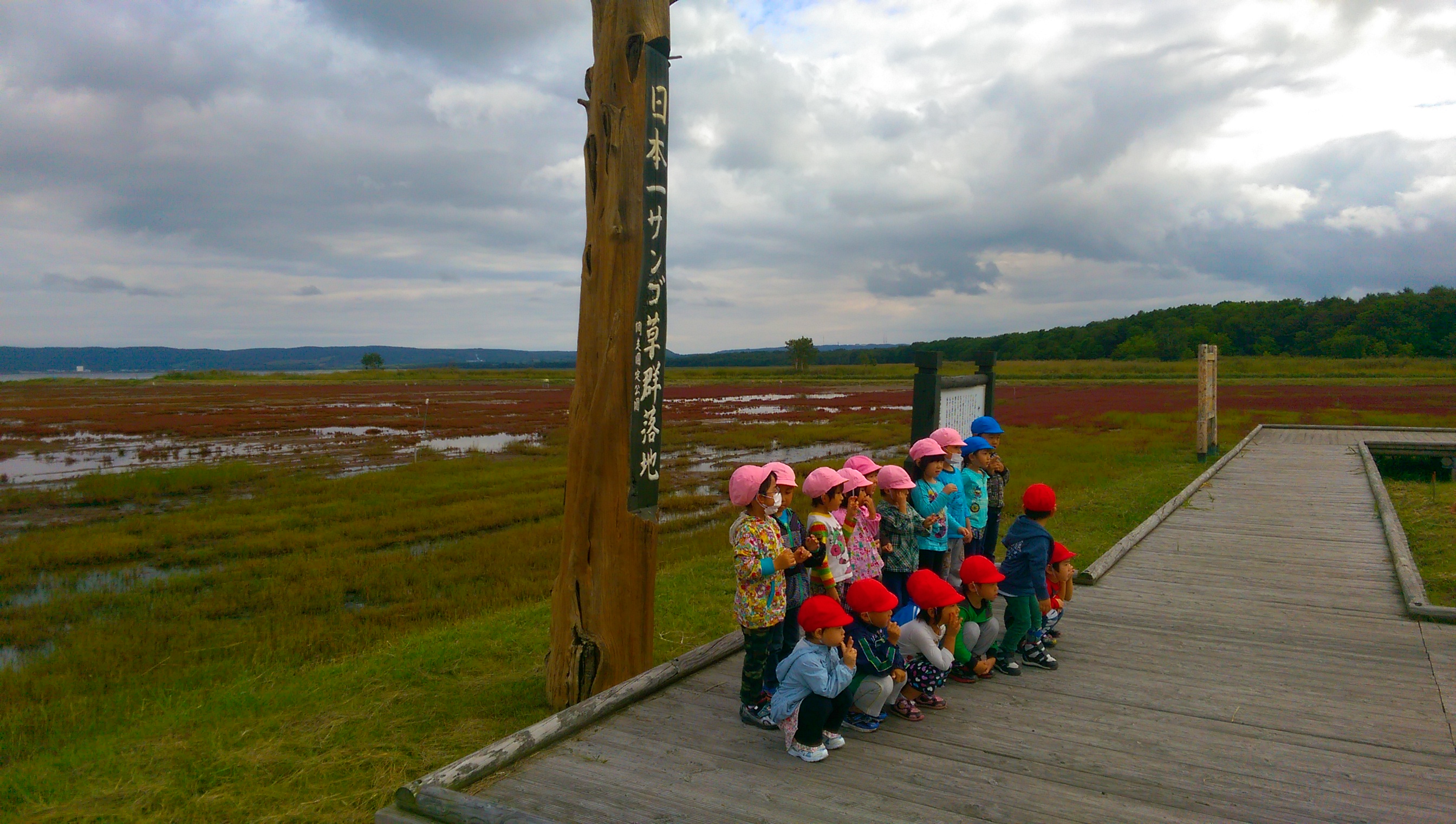 離開山頭,我們前往能取湖參觀紅珊瑚草區,現今正是變紅的季節。這邊我們稍微又走錯路了,紅珊瑚草其實有好幾片,可以參觀的只有一區,不過GPS都標注出來了,所以我們一路往北,已經都開到海邊了,才發現原來去錯地方了。後來想想還好,總是可以說我到過鄂霍次克海邊了。