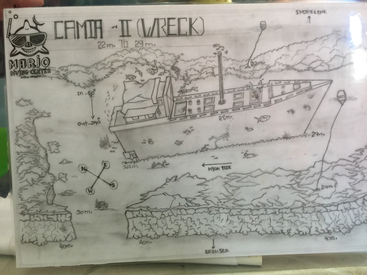 雖然是菲籍潛水長帶下水,下水前台籍教練有跟我們作行前簡報,他們還有超精美的手繪潛水圖。菲籍潛水長帶隊非常小心,我太久沒潛這次耳壓有點問題,潛水長很耐心地關照我們。