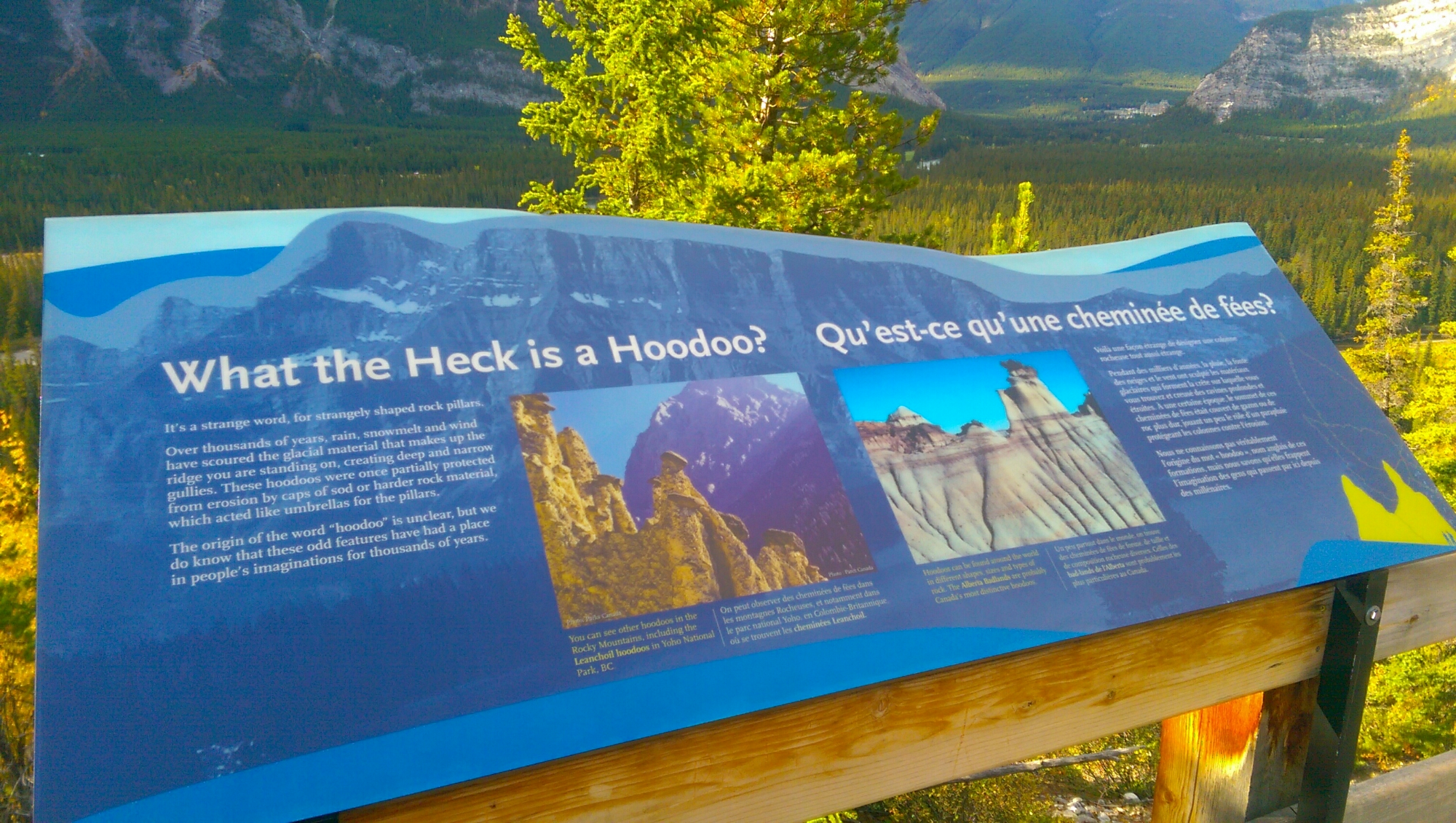 不過,至少早上天氣還不錯,我們趕快去附近的步道 Hoodoo Trail (翻譯成巨人石步道)。隧道山是班夫附近一個小山丘,一側面對班夫市區,一側則是面對弓河 (Bow River)河谷。弓河是我們這是旅遊的核心,從卡加立開始,一路到班夫,露薏絲湖,甚至到哥倫比亞冰原,都是沿著弓河發展。