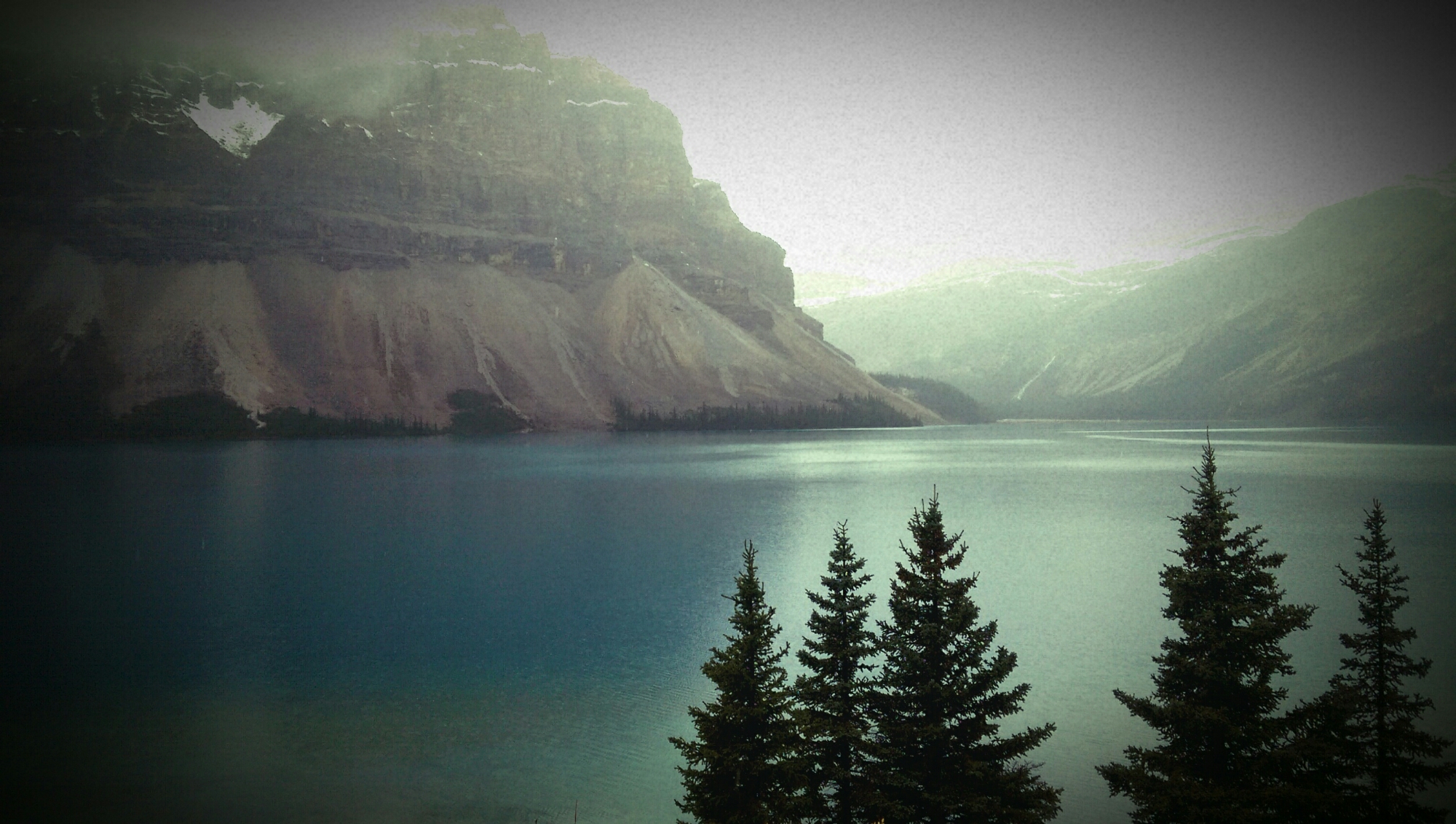 慢慢接近中午有點下雨,我們啟程前往傑仕伯,一個約 250公里,本次旅遊行程時間最長的一段。一路往北雨勢就越大,經過露薏絲湖(Lake Louise)也已經開了一個多小時,看到弓湖 (Bow Lake)的招牌我決定稍微停一下。