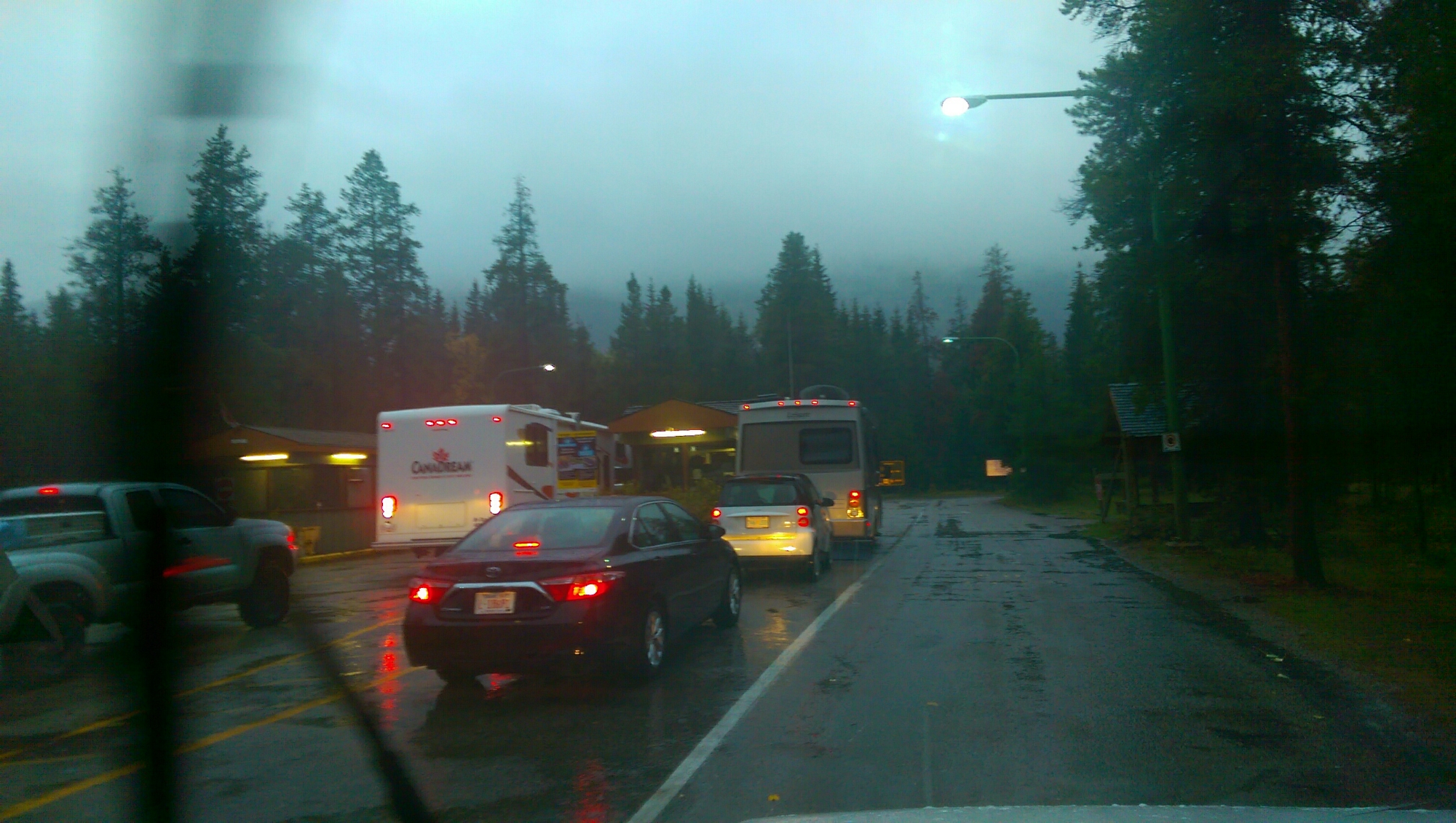 這樣子的做法確實有點彈性。原本我們沒有要這麼早去傑仕伯,但是因為天氣預報說今天下午下雨,我們用來開 200多公里的冰原大道(Icefield Parkway)正好。不過,看到班夫露營區的盛況,也讓我們擔心到了傑仕伯沒有營位。