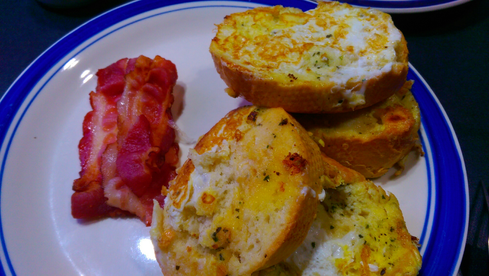 早上有新早餐品項加入,就是美式的培根。在超市裡研究過,美式的培根可以用微波爐配合紙巾,經過嘗試,終於做出店裡那種乾乾的感覺。