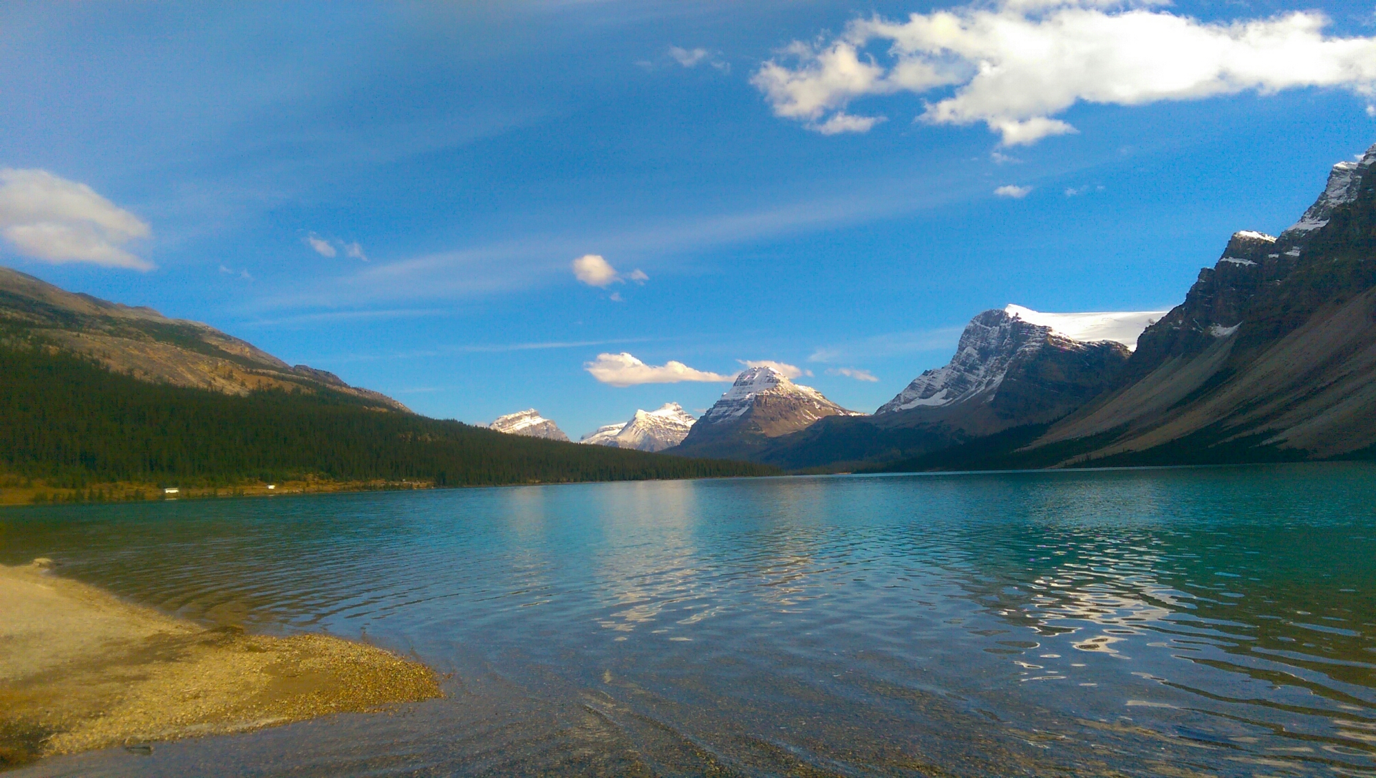 說到冰原 (Icefield)與冰川(Galicia) 的差別,我理解導覽司機說的,應該是類似湖與河的差別,冰原附近的冰川都匯流至此,冰原本身則是冰凍幾萬年之久。也因為冰凍萬年,造成折射率的變化,吸走了除了藍光波長外的光,以致下游的河水 (如弓河) 呈現藍色。