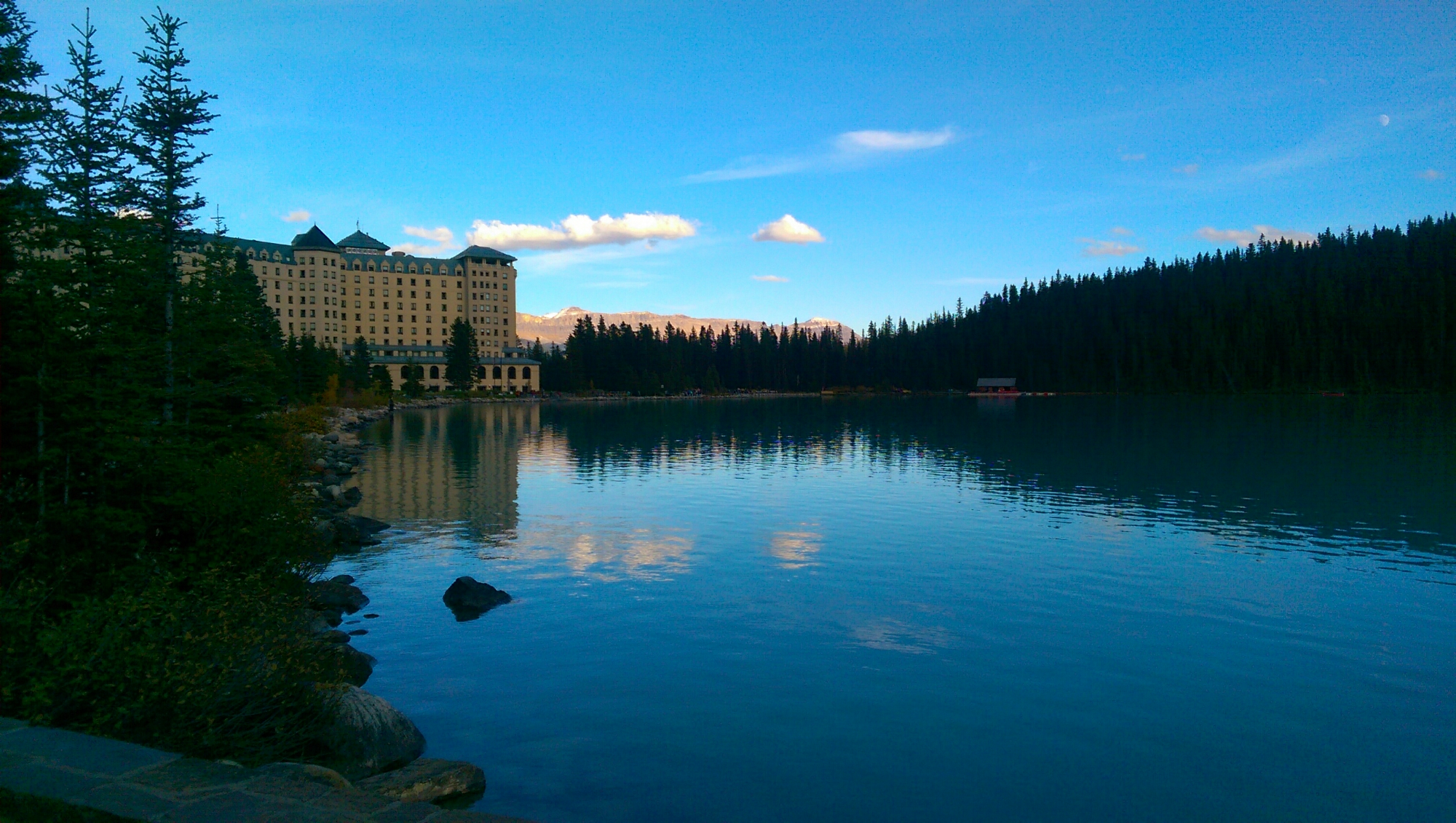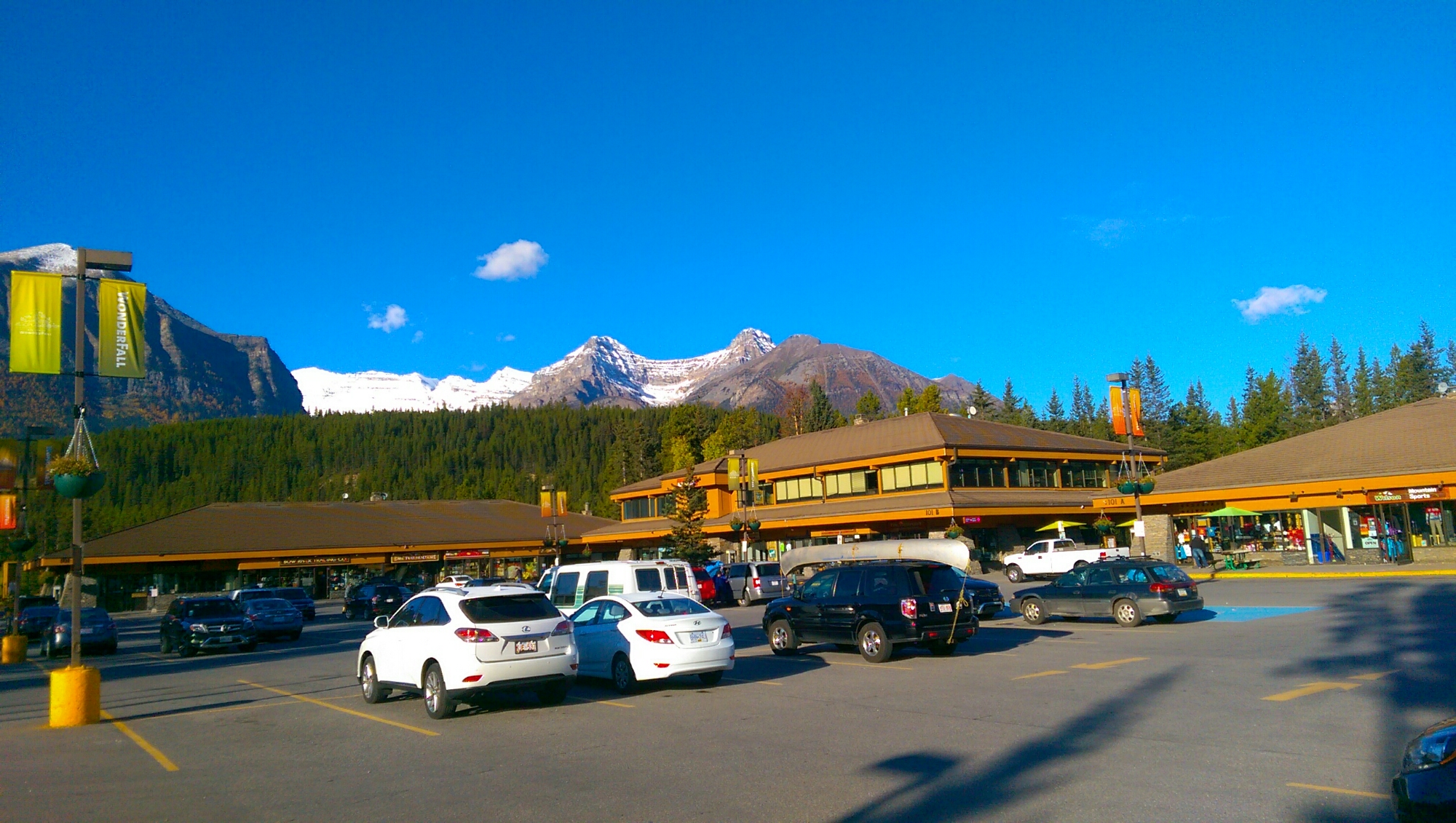 這邊離市區約 1公里,到露薏絲湖5公里。我們先到露薏絲湖走走,再到鎮上唯一的 Samson Mall購買晚餐。這裡物價又更加昂貴,還好牛肉有特價,兩塊牛排只要 $6加幣,今天晚上當然吃牛肉。