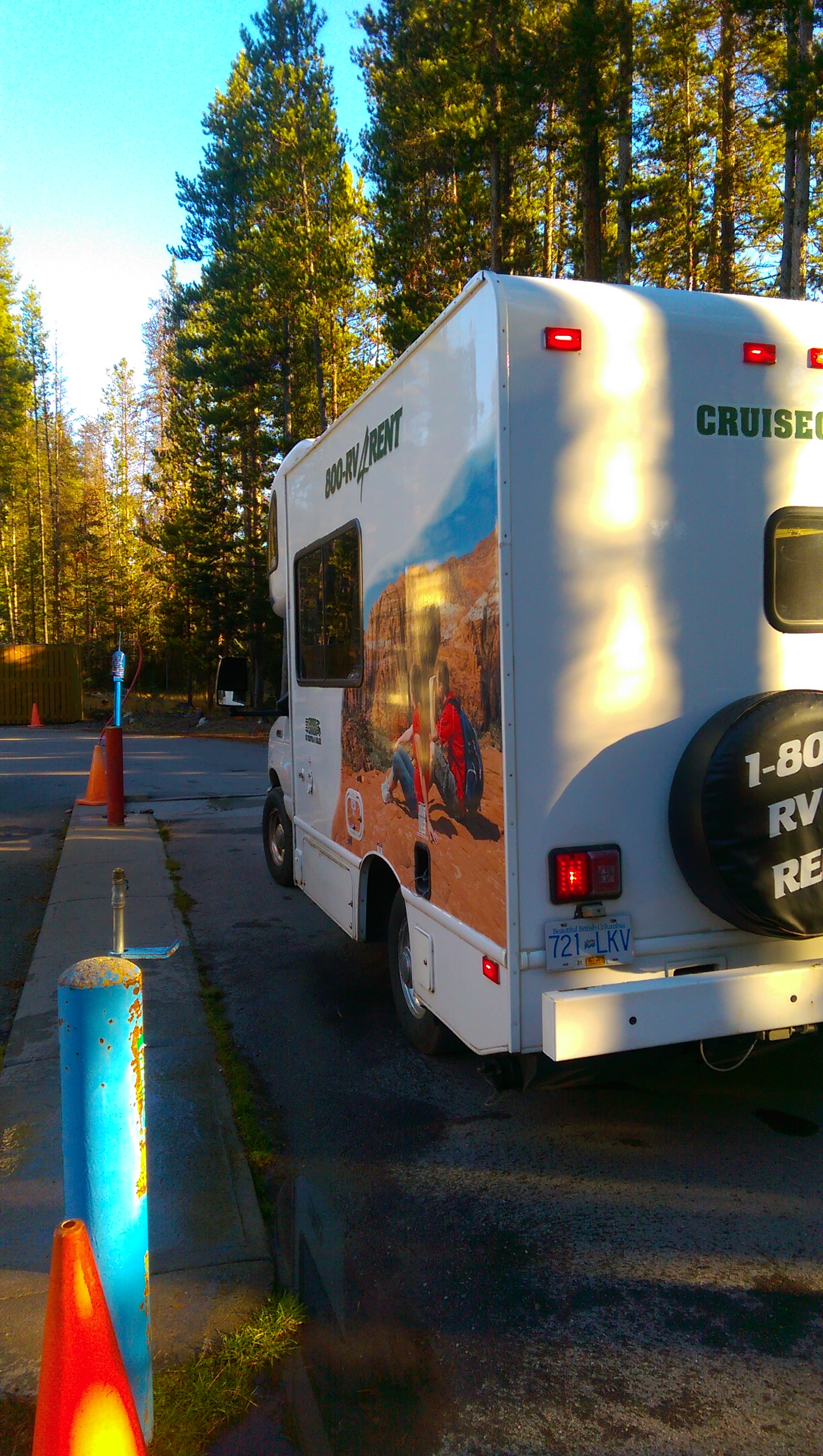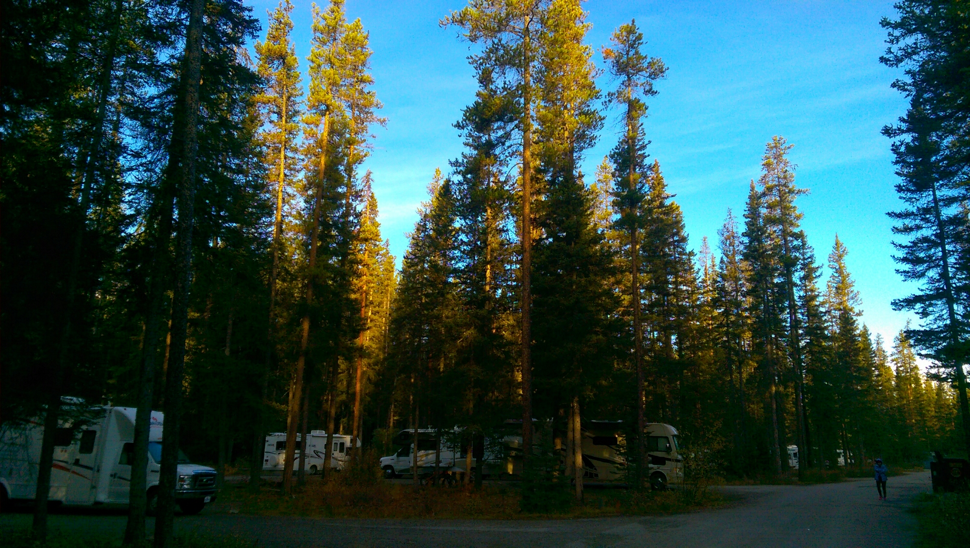 終於在 5點多到達露薏絲湖的露營地。還好,今天還是有位置。問了一下,露薏絲湖根本就全區沒有 Full Hook-up,但是都有電。不過,營區有到廢水與加水 (營地管理人員擔心當天水管有破裂)的地方。