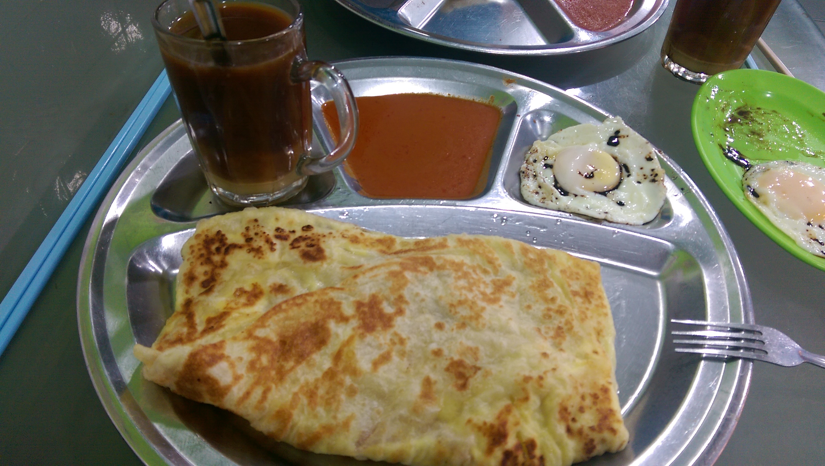 - 這邊沒有早餐,購物中心內的麥當勞之類的餐廳早上也沒有開。自購的當地行程旅行社來旅館接的那兩天,我們只能考慮前一天買麵包(市區就可以去吃肉骨茶之類的早市)。後來,旅館櫃檯跟我們說,其實購物中心有當地人常去一家餐廳 My Curry House,我們也去嘗試了一下,這家幾乎都是馬來人在吃的,賣一些炒飯炒麵之類的東西。很意外的他們有賣類似印度飛餅的 Roti Telur,一份只要2RM。旅行中有時就有這些意外的美好。