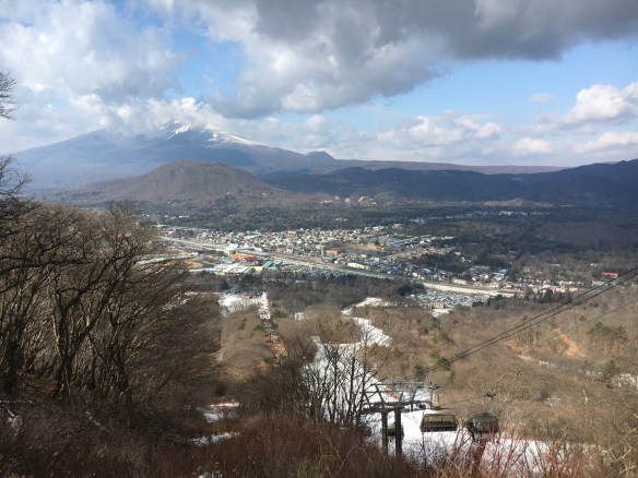 整個旅途倒是漸入佳境,本來有點白色柏油路的感覺,很難滑。到了下午漸漸有了粉雪的感覺,好滑的多。輕井澤的綠線很多元化,從山頂往下有好幾條可以選擇,我們滑的很開心。上圖是最高層的纜車站,有一個可以看看遠方山岳的休息處以及廁所。