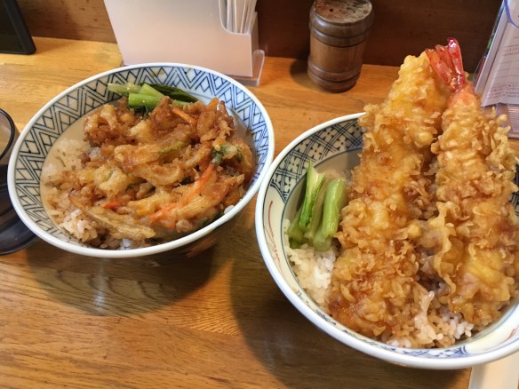 中午我們是滑雪場主要入口的餐廳旁邊的そば蔵丁子庵,點的是天婦羅,滑雪完吃什麼都好吃。炸蝦炸野菜在1000日圓左右。