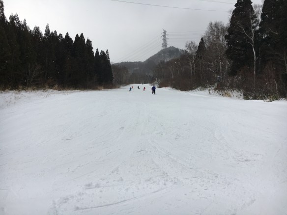 適逢新年,湯澤Gala的人很多,因為很久沒滑,山下的入門區我們滑了好幾次,排隊的人很多。後來我們就搭到最上層(兩個纜車都可以)走綠線下來,這個綠線距離還算長,中間也沒有比較陡的路段,我們很喜歡。