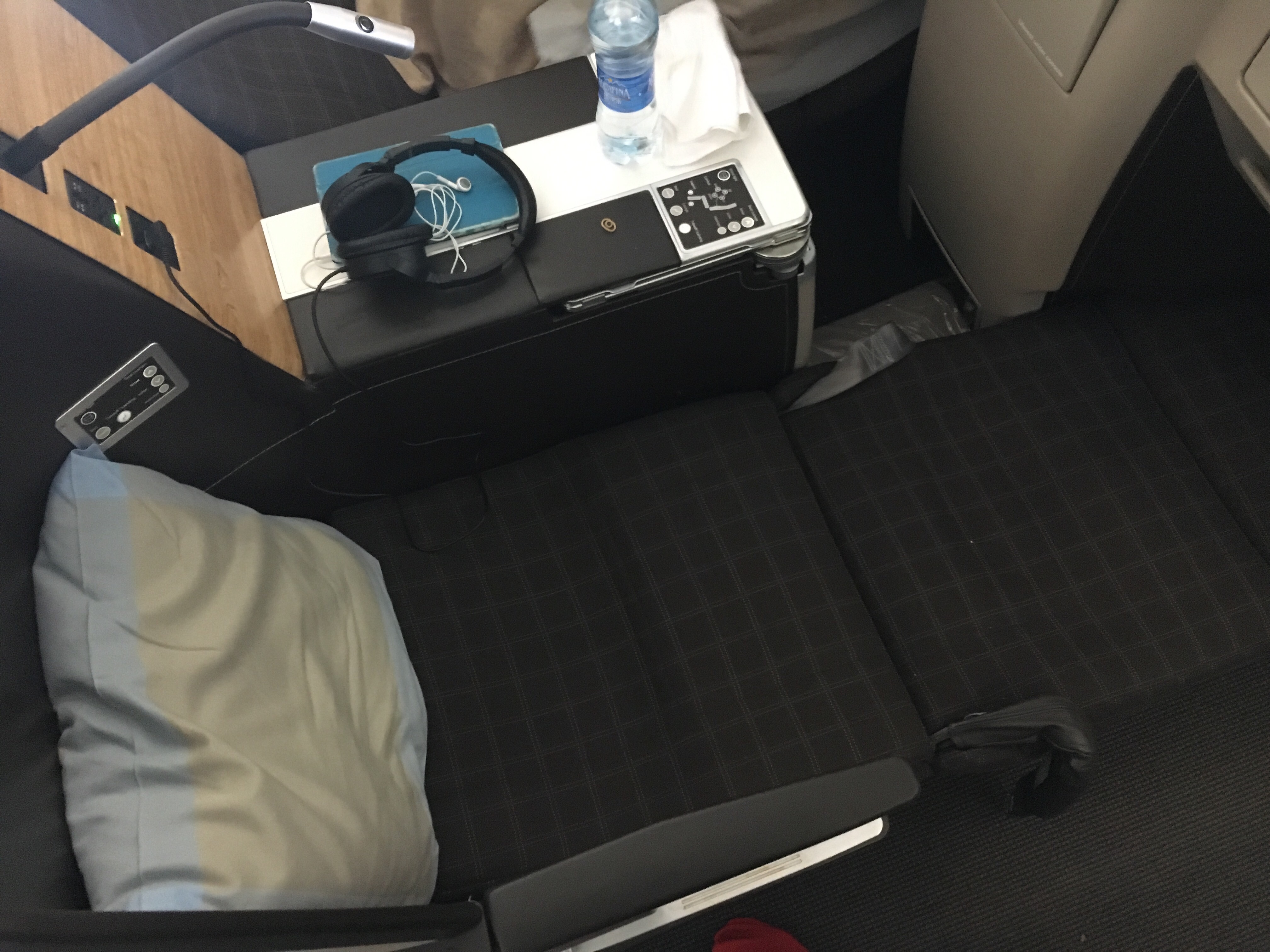 本來以非魚骨不能躺平,結果是可以的。看起來位置不夠,但是其實腳可以翹到前面座位扶手的下方,我身高將近180公分可以完全躺平。如果要說缺點,大概就是這樣床比較低,不過床頭也有控制器。