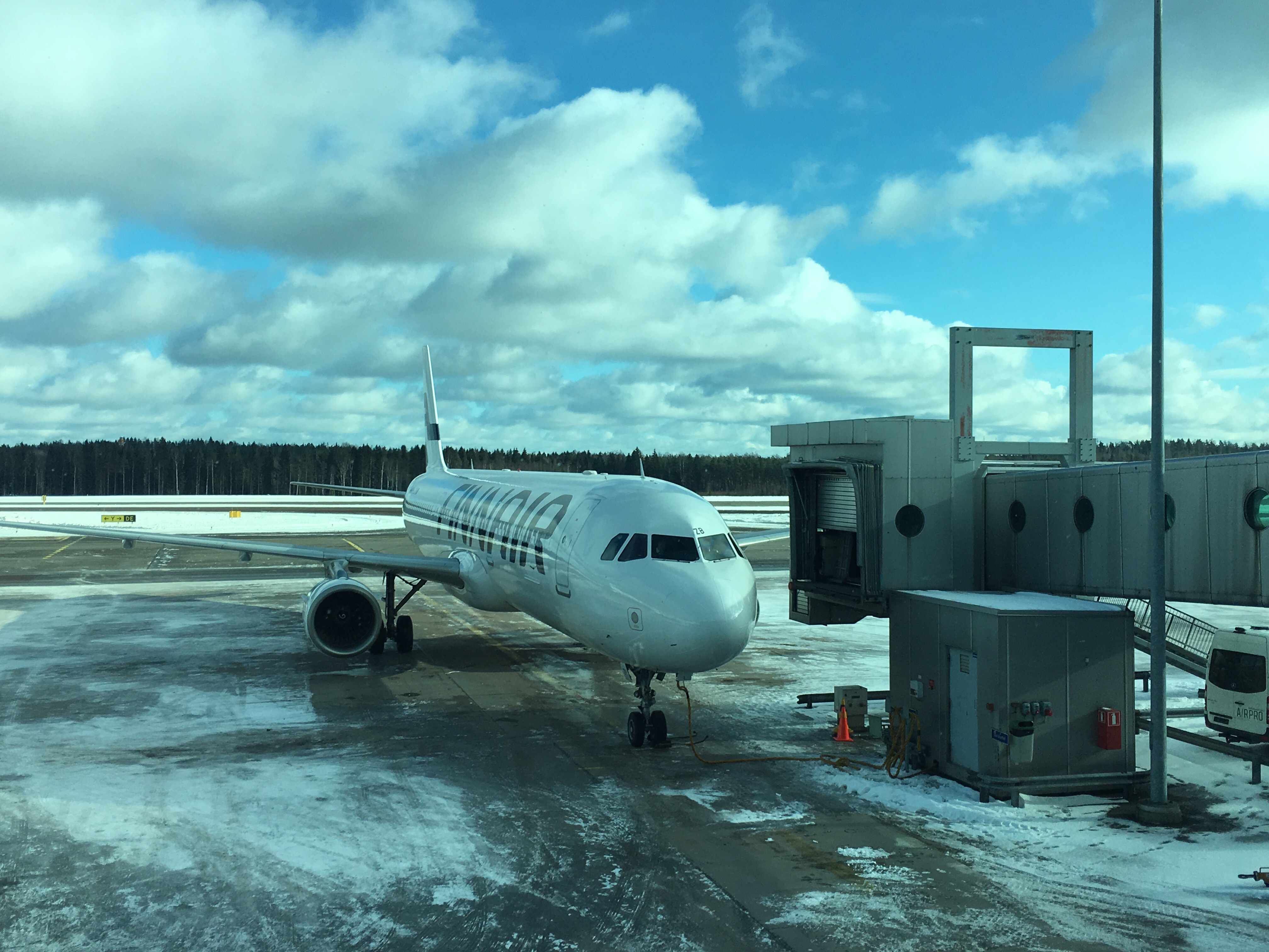 從赫爾辛基機場到羅瓦涅米(Rovaniemi),大概是一個小時40分鐘的航程。從機場到市區有7€的機場巴士,在每一個航班到達都會有。不過事實上搭乘公車會更便宜,只資訊不大容易取得。我們到達的時間是下午的兩點多。
