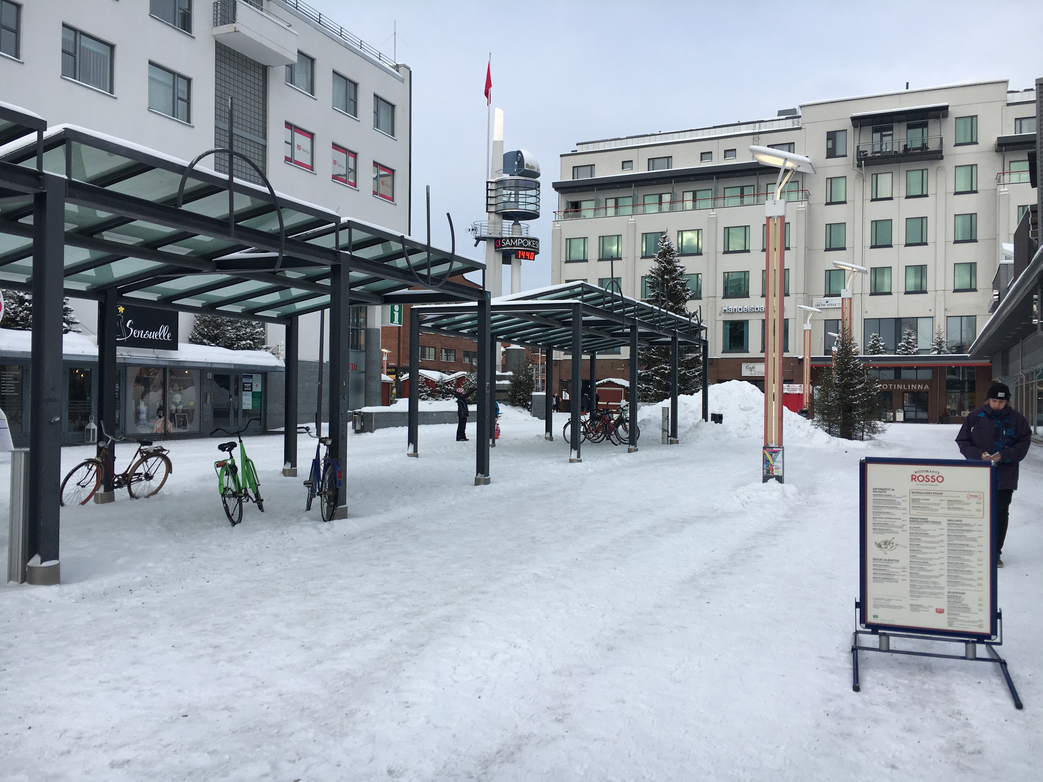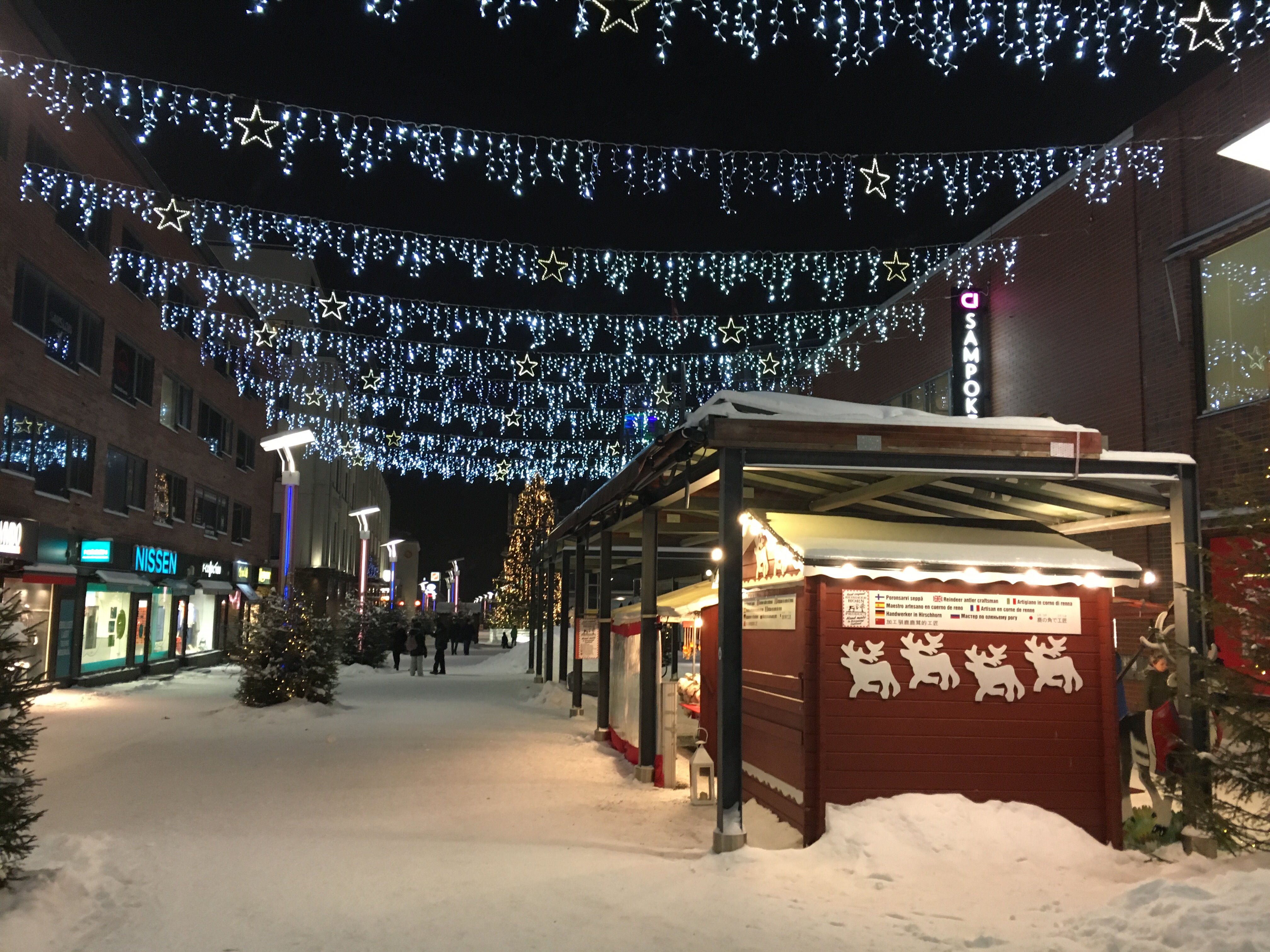 在訂完行程到晚上出發的期間,就是我們在市中心逛街的時候了。羅瓦涅米的市中心應該是北極圈城市中最熱鬧的了,這也是我們選擇來這邊的原因。本來也考慮過去瑞典的Abisko,想到交通的狀況以及超市的補給,還是這邊比較簡單一點。
