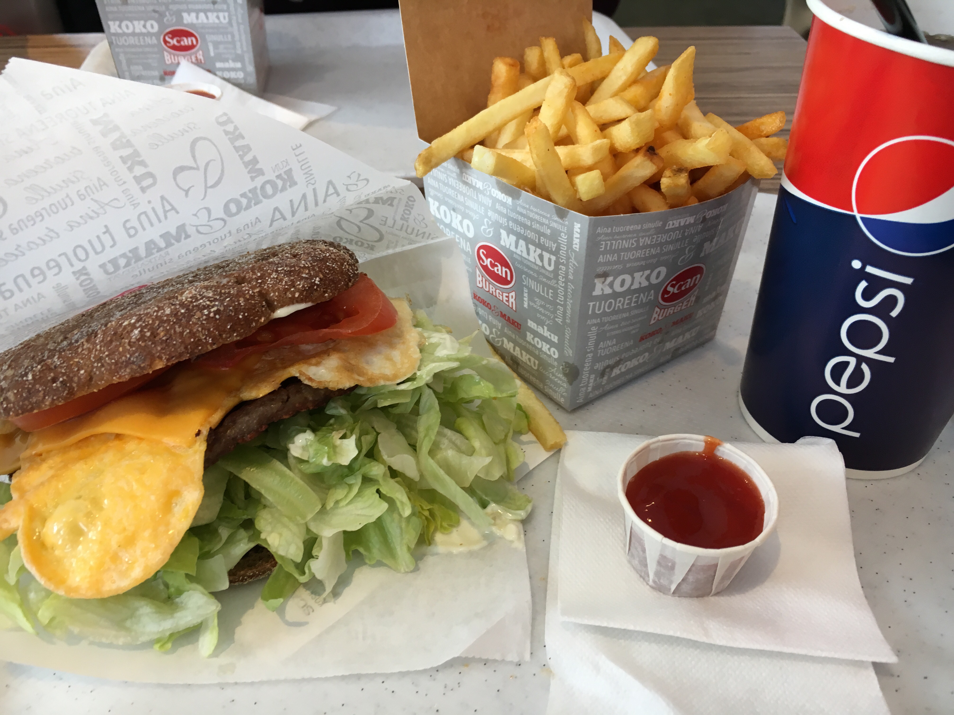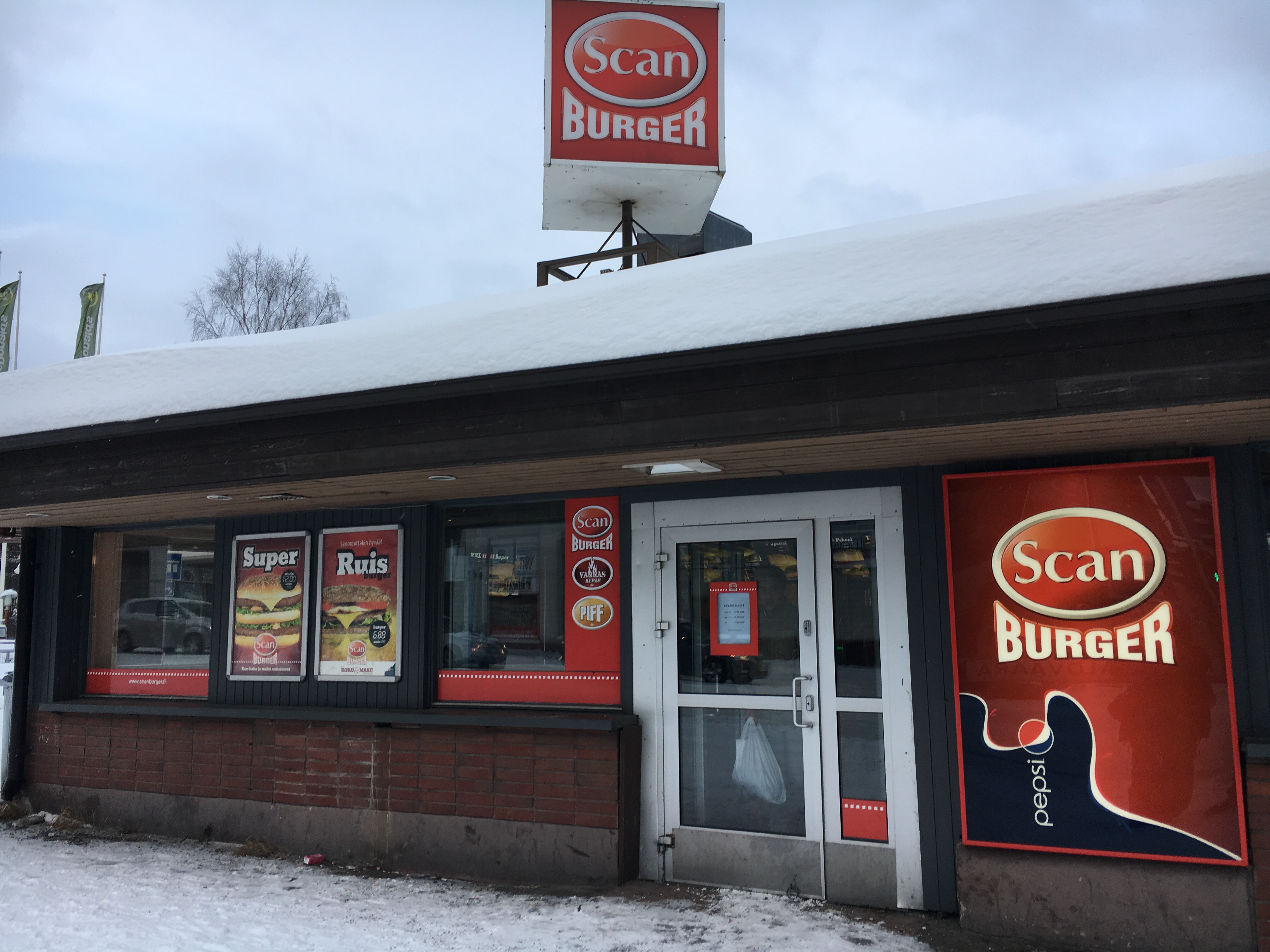 路上有號稱全世界最北的麥當勞,但是我只有進去看一看大麥克的價錢而已。我們指的是旁邊的一家漢堡店,叫做Scan Burger,還蠻好吃的,薯條炸得很不錯,還有一個種加荷包蛋的漢堡,我以為這個只有在台灣才有。