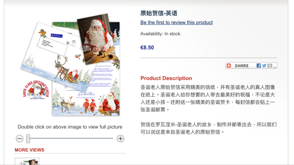 紀念品店可以購買明信片寄回家,也可以填表指定聖誕老人在今年聖誕節寄信回家。要價8.5€,我發現網路上就可以填這個表,就不急著花錢了。