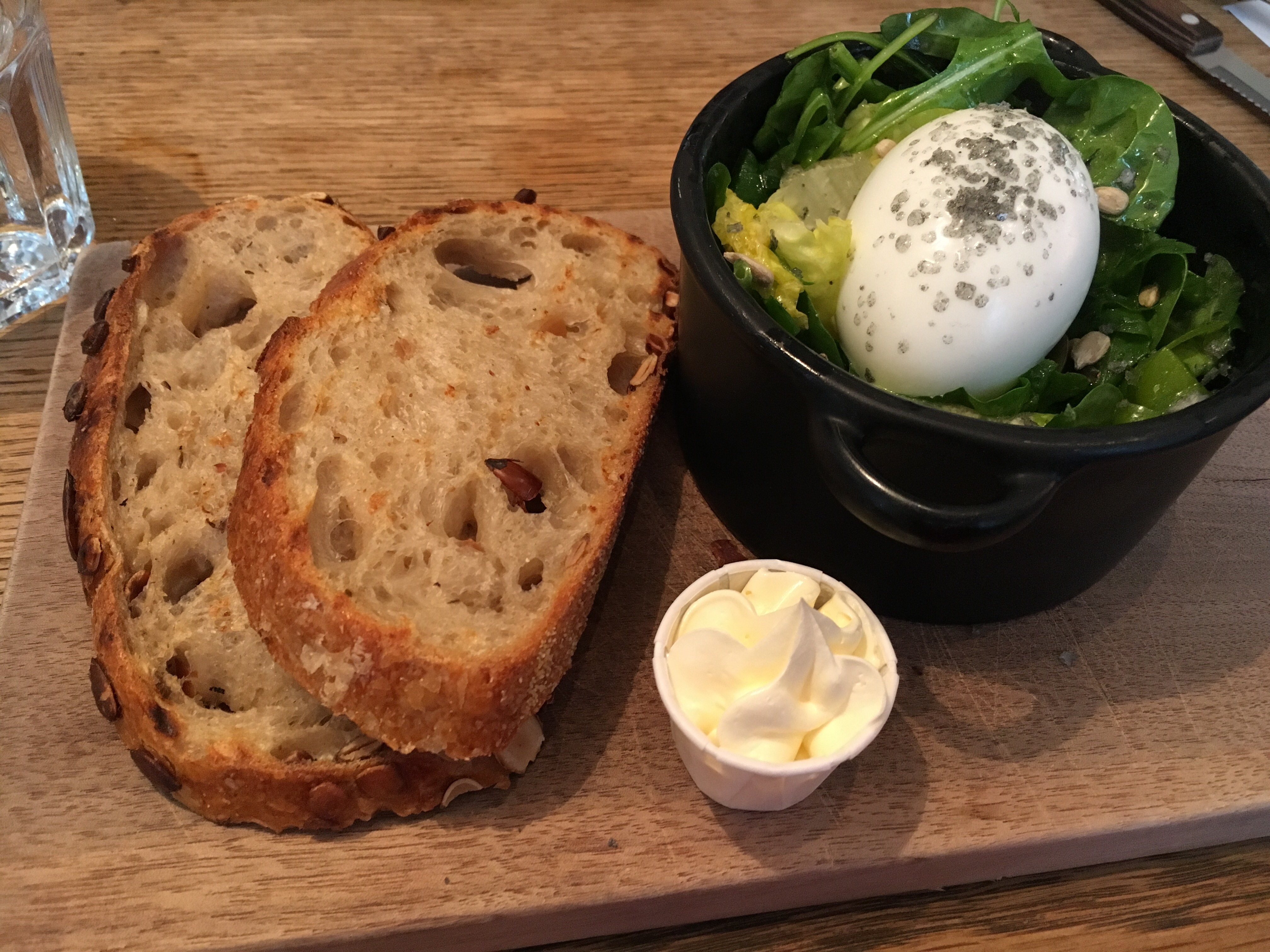 這家早餐店超好吃的,雖然很有名的麵包是可頌,但是我們覺得這邊的酸麵包Sourdough比較好吃。我們叫的早餐是配上水煮蛋沙拉,以及一點岩鹽,890冰島克朗。咖啡是560克朗,不過店裡面開水也不用錢就是了。
