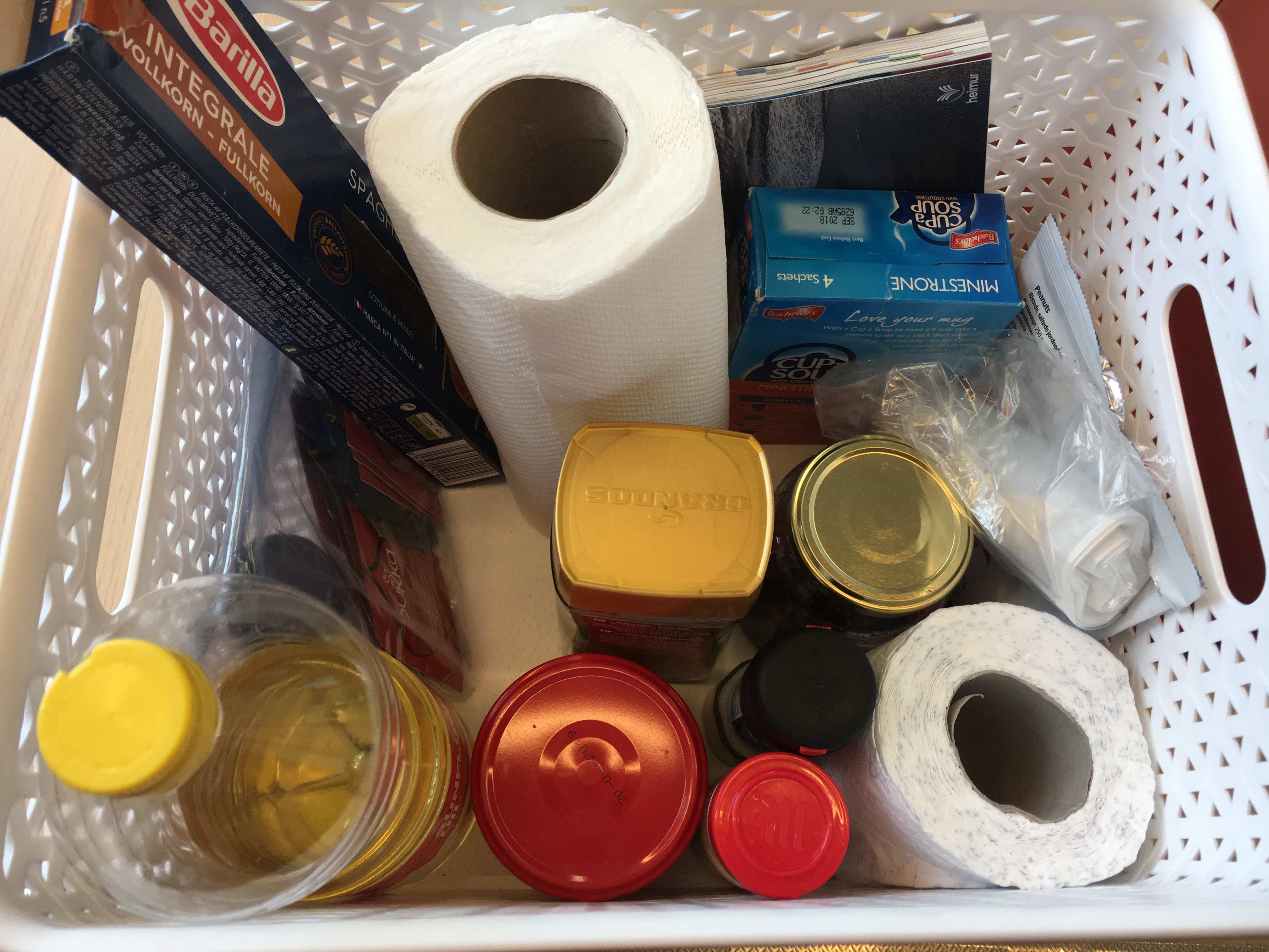 這個租車店另外一個強項,就是他們很細心的準備了一個「食物交換區」,都是昨天還車客人留下來的。因為我們是第一組的客人,所以櫃子裡滿滿的沙拉油鹽胡椒衛生紙等等的物資。我們以前海外露營車旅行時,就常常為這些事情傷透腦筋。這個真的是佛心來者的。