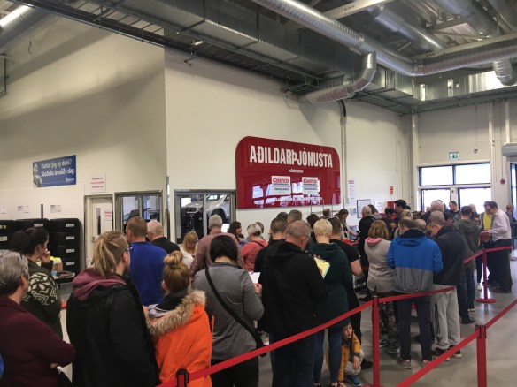在拿到車子之後,我們就依照計劃前往冰島新開張的好市多。想不到10點鐘剛到,這家好市多已經擠滿了人,尤其是辦卡的排隊線,排的滿滿都是人。好市多的全球設計都一模一樣,所以我們也依照自己的計劃,去拿了麵包牛奶水果雞蛋等的物品。