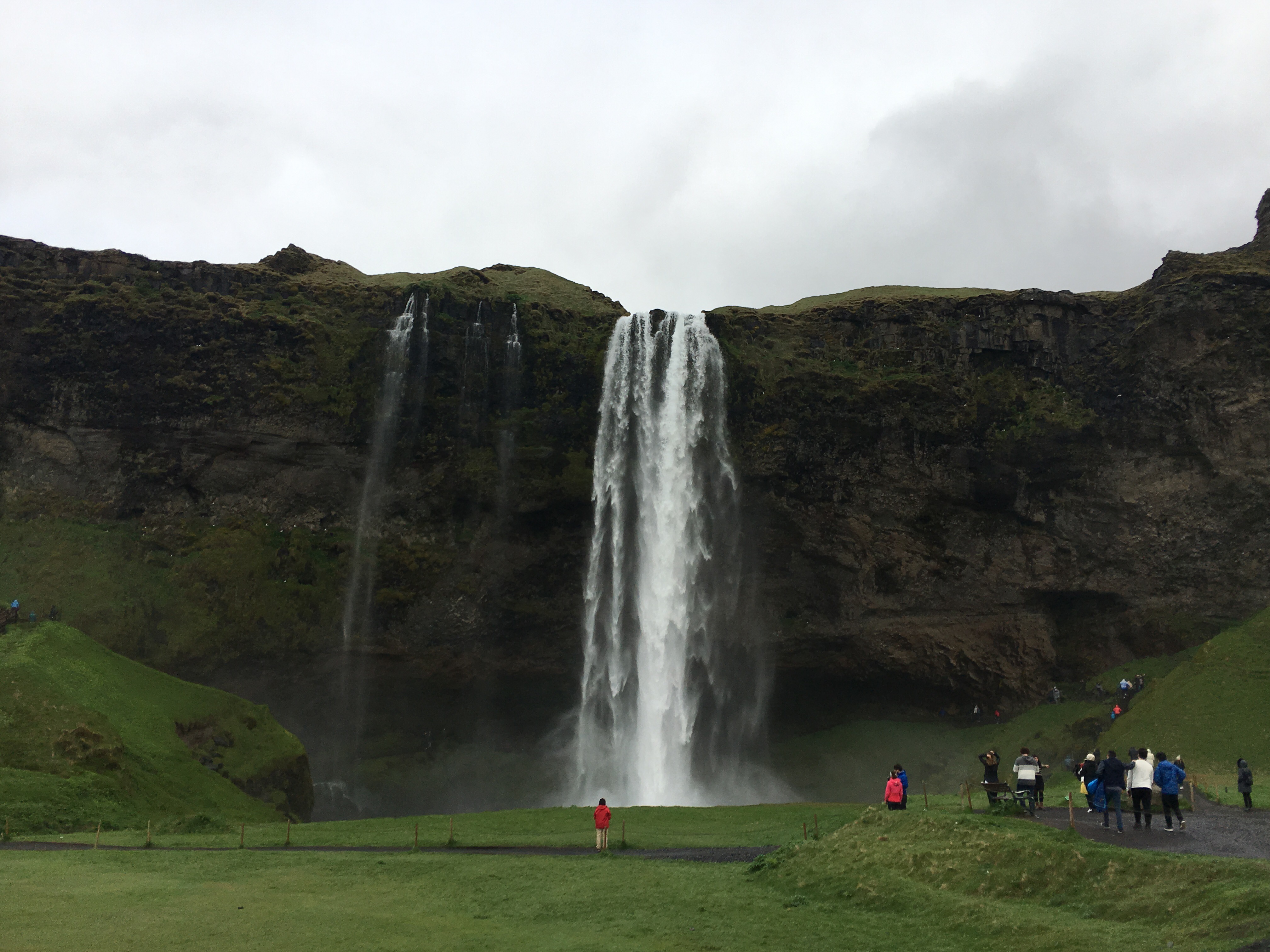 第一個瀑布塞里雅蘭Seljalandsfos,除了可以從正面看,還可以從瀑布後面的步道,有內往外看。不過走這個步道,身體一定會淋濕。