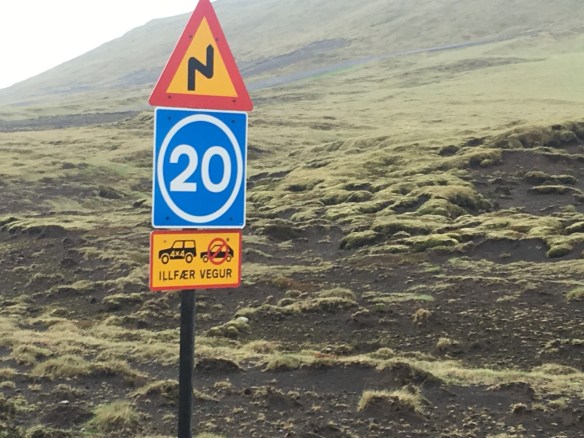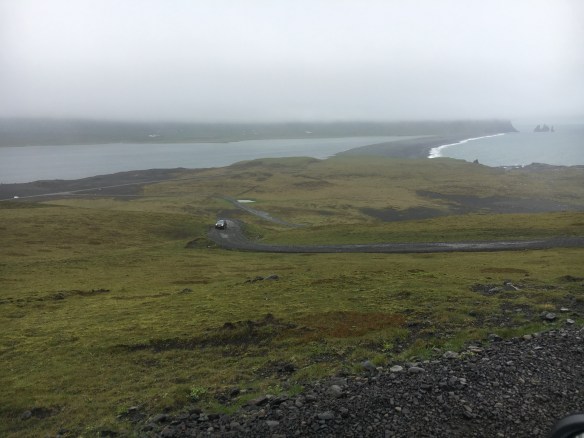 往海蝕洞Dyrhólaey的路上,路不大好開,甚至有一個標誌說只有四輪驅動的車子才可以上去。到了看海蝕洞的平台,能見度非常的差,所以只能夠當作來練習四輪驅動車的狀況了。