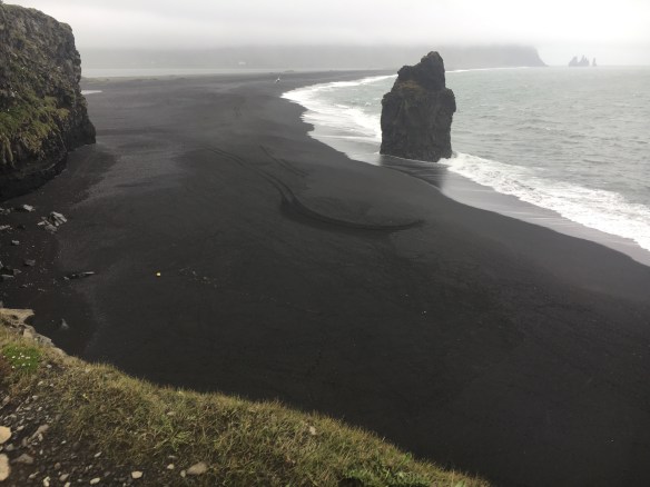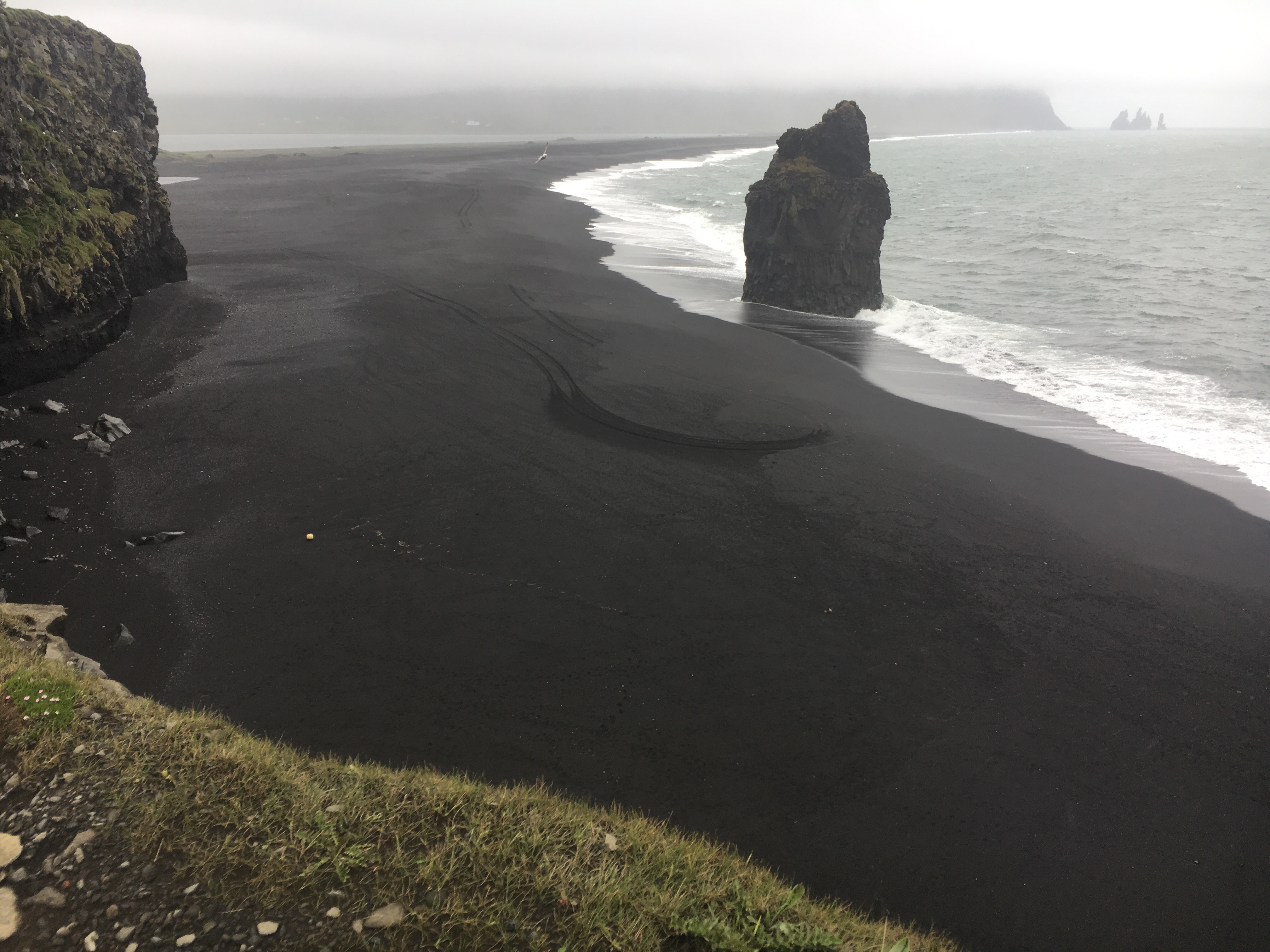 從海石洞下來之後,黑沙灘的能見度就比較高了。這個黑色的沙灘,真的比較少見。可能跟冰島的火山有關,整個維克鎮在2010年的時候,還因為火山爆發撤離。
