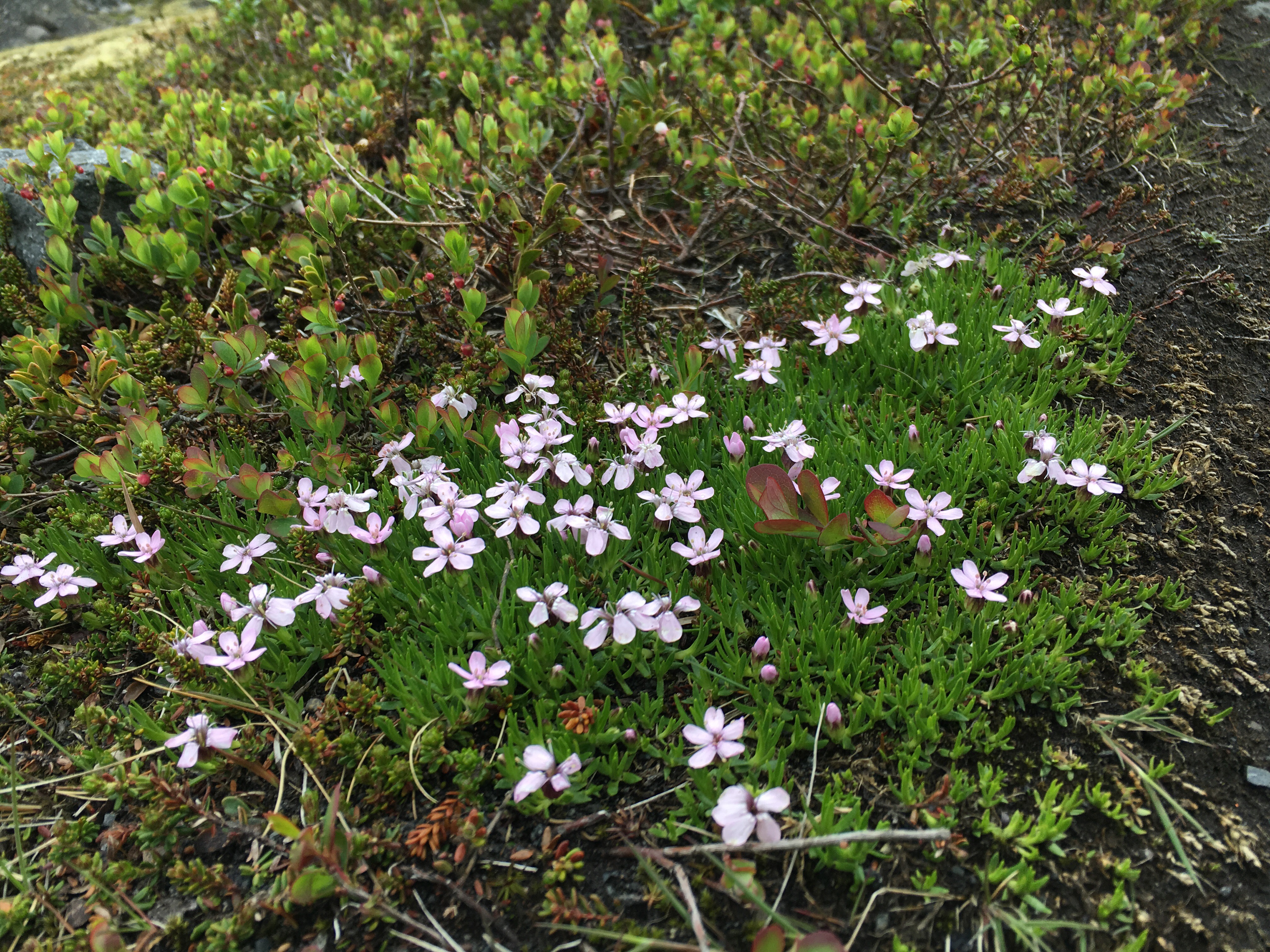 由於全球暖化,冰川融化的地點不斷的往上移動,根據嚮導的說法是一年35公尺。所以在開始健行的時候,地上還是有綠色的植物,主要是地衣。不過,有時還會有很漂亮的小花就是了。