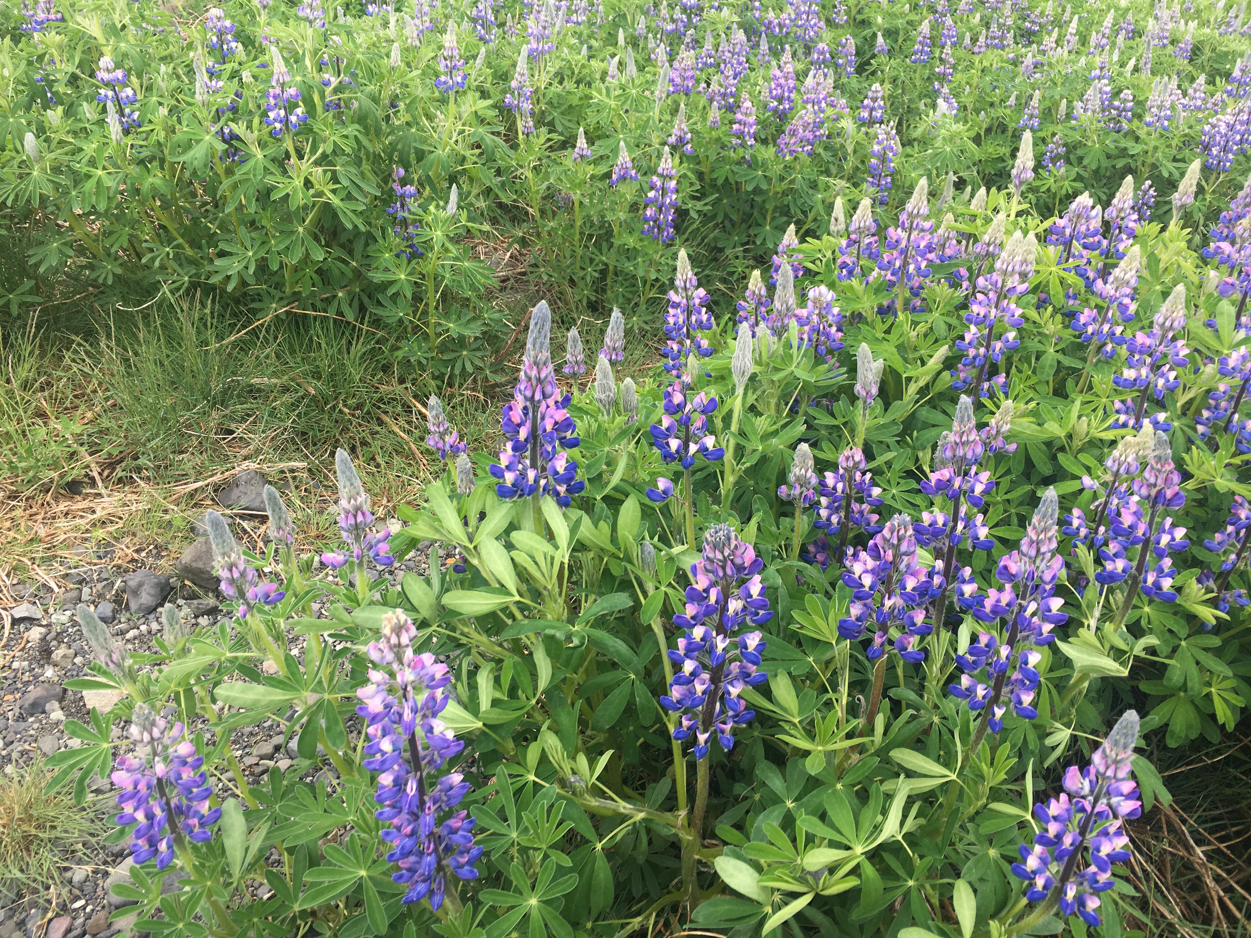 結束完這個行程之後,我們找了一個地方稍微吃點東西。因為,我們忙著到集合地點,都還沒有吃中餐,只吃了一個能量棒。我們從冰川回來的時候,發現有一大片紫色的花,本來以為是薰衣草,但是查網路之後才發現是魯冰花。就決定在這邊吃。