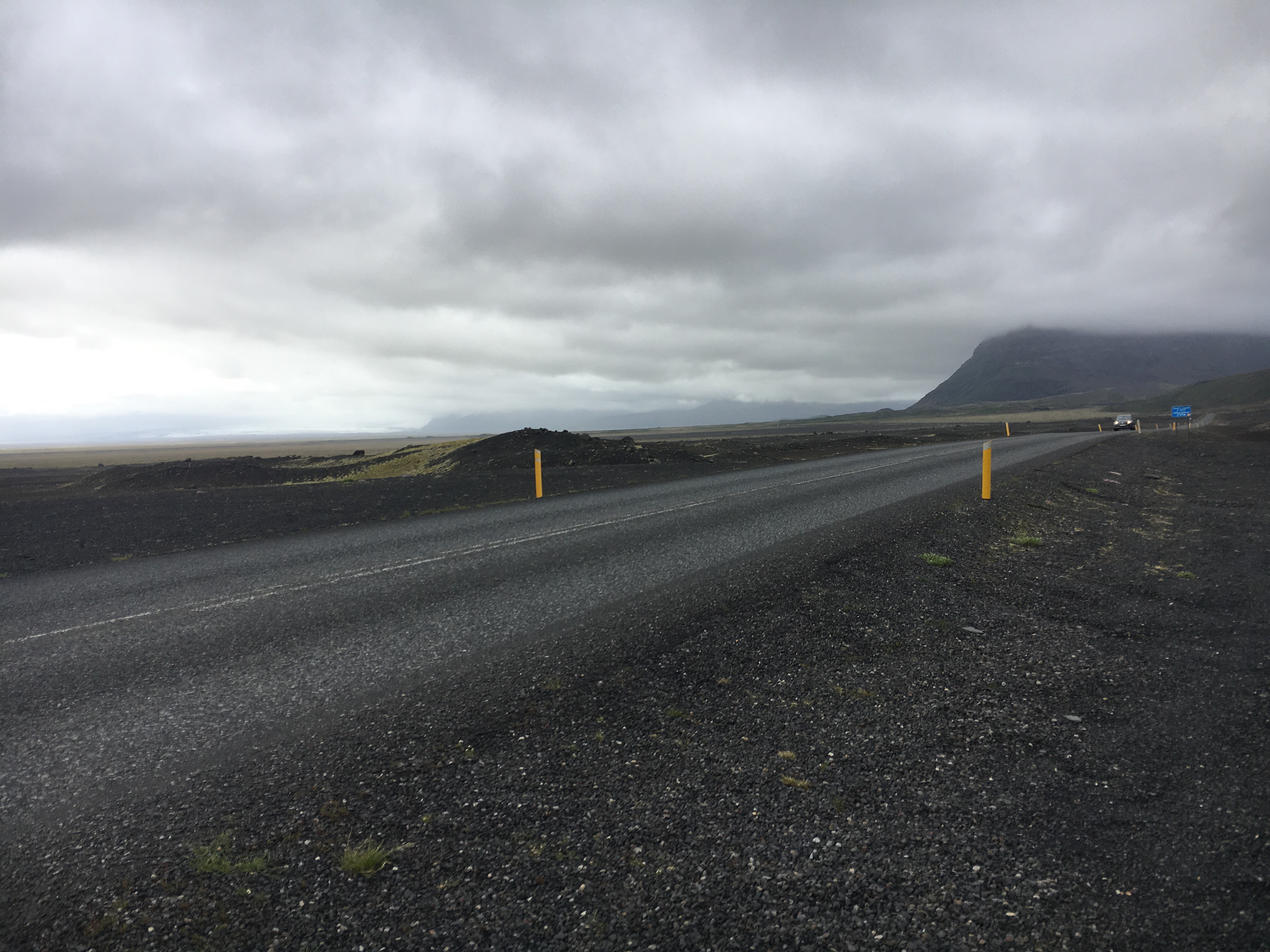 昨天的行程,大部分路邊都是欄杆,欄杆養馬或者羊。到了今天, 路邊不是地衣,就是黑黑的土壤。主要是因為前幾年火山爆發,造成冰川融化造成了洪水,所以很多土壤連地衣覆蓋都沒有。