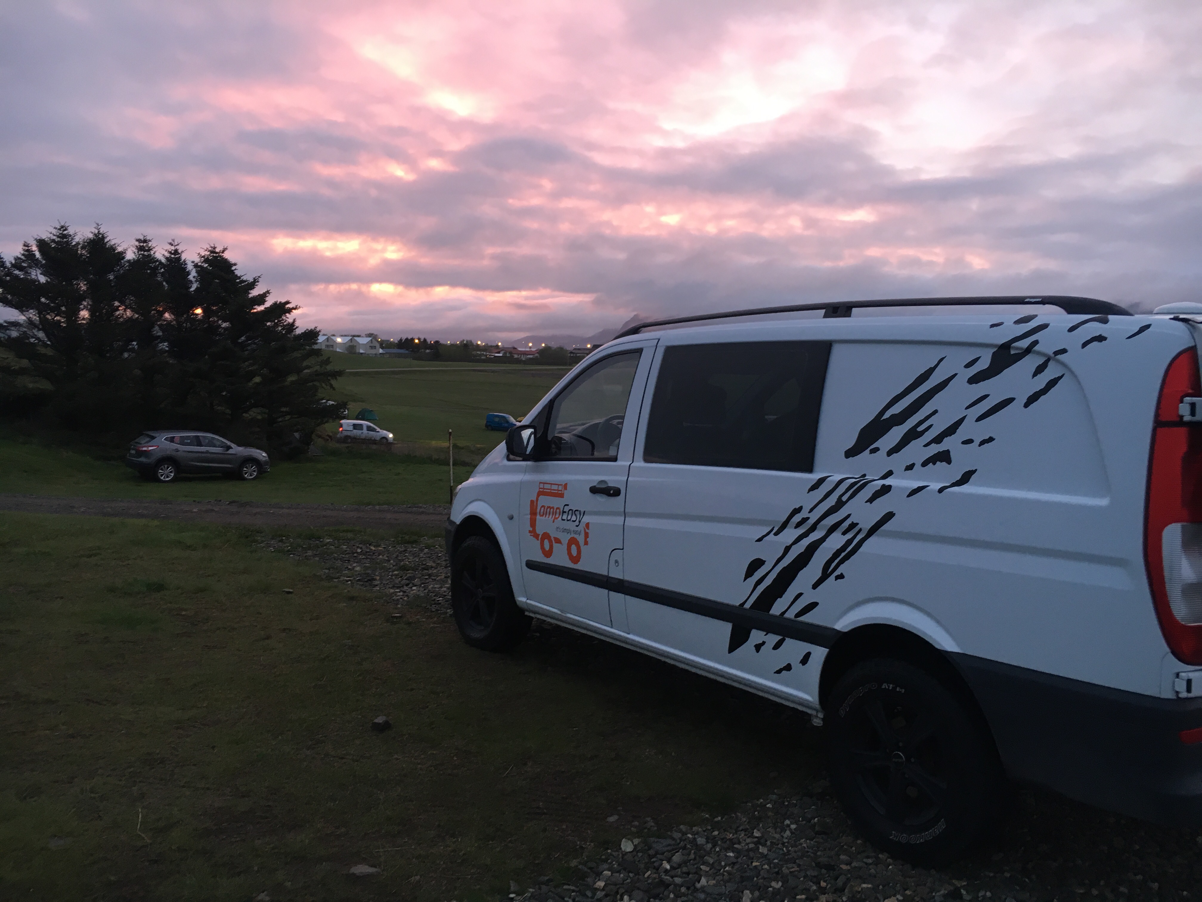 接下來時間已經超過六點多了,我們接近八點的時候,才來到了今天的露營地霍芬鎮。到這邊的時候,天氣已經完全放晴了,冰島的天氣真是多變化。