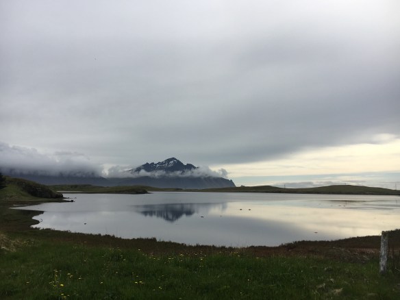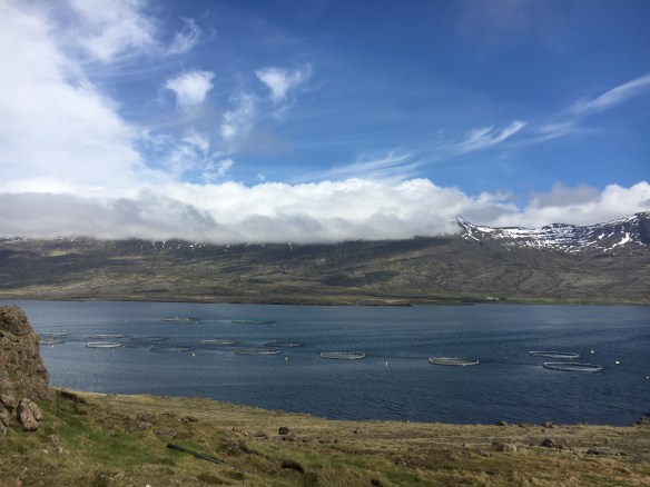今天的主要行程,是冰島東部的峽灣。本來對於峽灣這個概念不是太清楚,現在才知道峽灣就像是手指頭一樣,手指間就是峽灣地形。因為無法透過橋樑聯繫手指的兩端,所以只好透過公路繞一大圈,也因為如此讓地形變得很特別。在經過一個隧道之後,我們正式進入峽灣。峽灣裡頭的水,變得非常的平靜。平靜到就好像湖泊一樣。