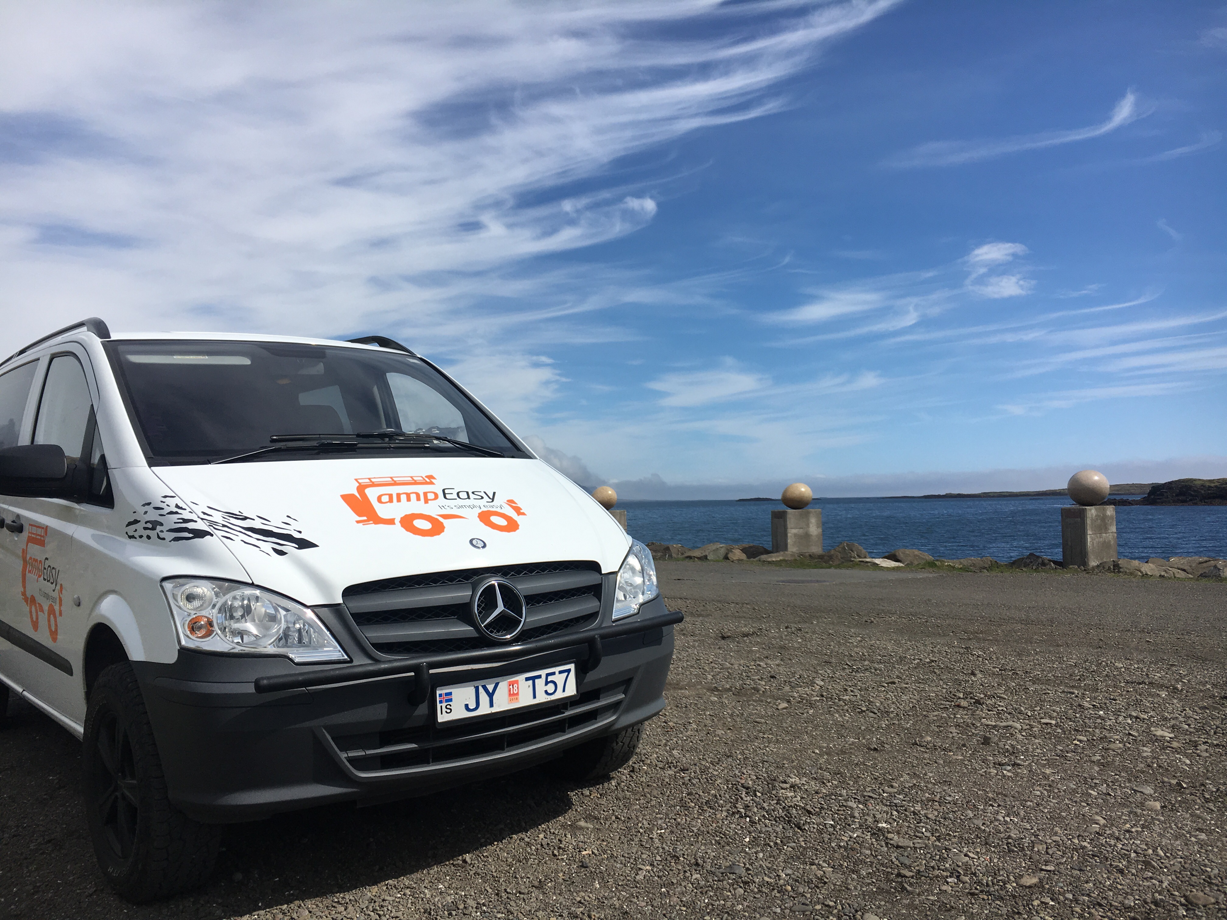 越往前開,天氣越來越好。我們很快就到達網路上人稱神山小鎮的Djúpivogur,這裡是一個漁港,也有一個很無聊的小景點叫做Eggin í Gleðivík,意思是什麼我不知道,不過看字面來說應該跟蛋有關,這個景點的欄杆也都是蛋型石。