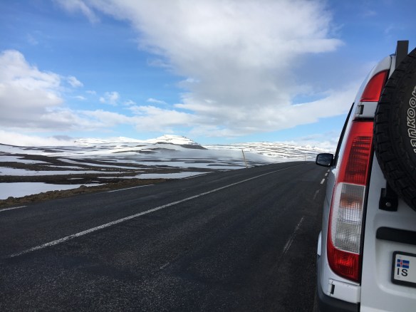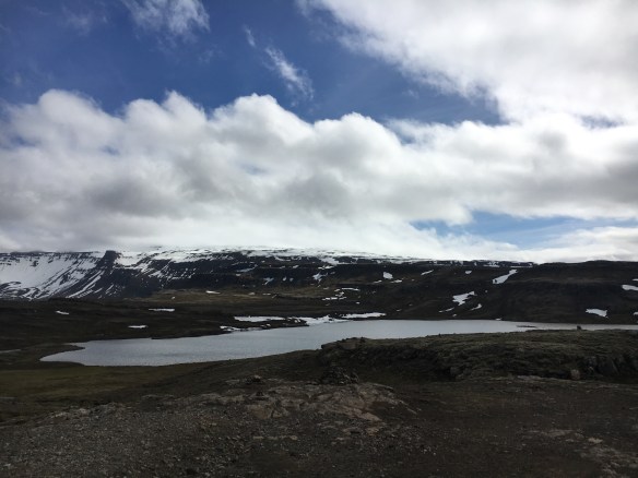 今天本來的行程,是要到網友所稱絕美峽灣小鎮的Seydisfjordur紮營。從Egilsstadir到Seydisfjordur,竟然也是跨越高原的道路。而且這個高原上,還有一大片沒有融化的雪。這條路也是電影白日夢冒險王THE SECRET LIFE OF WALTER MITTY IN ICELAND著名的長版滑坡拍攝地。