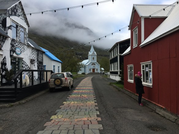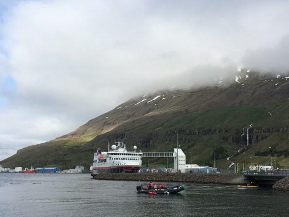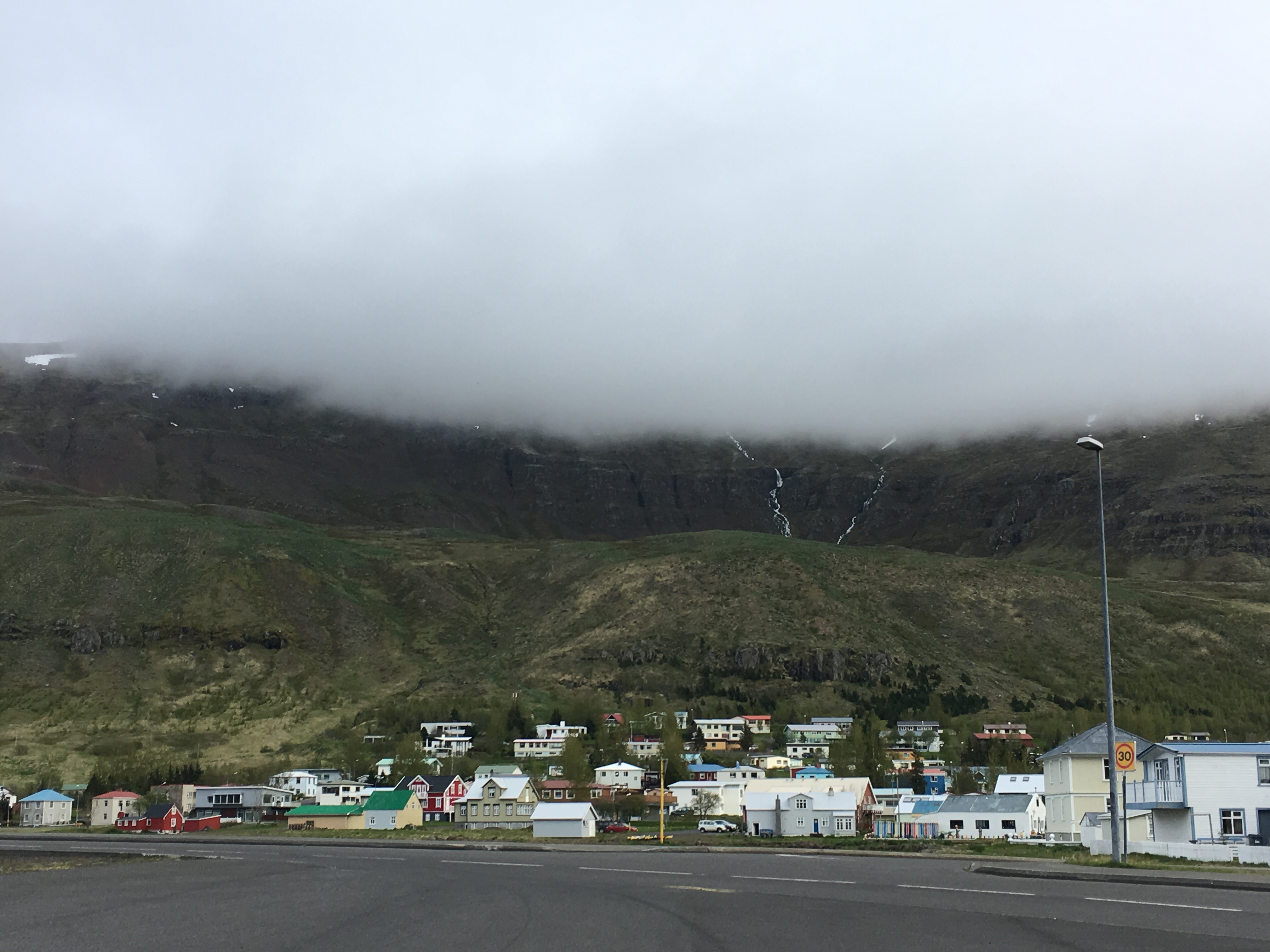 Seydisfjordur是一個港口,我們在港口旁邊竟然看到超大型的渡輪,以及應該是渡輪上的遊客正在滑獨木舟。
