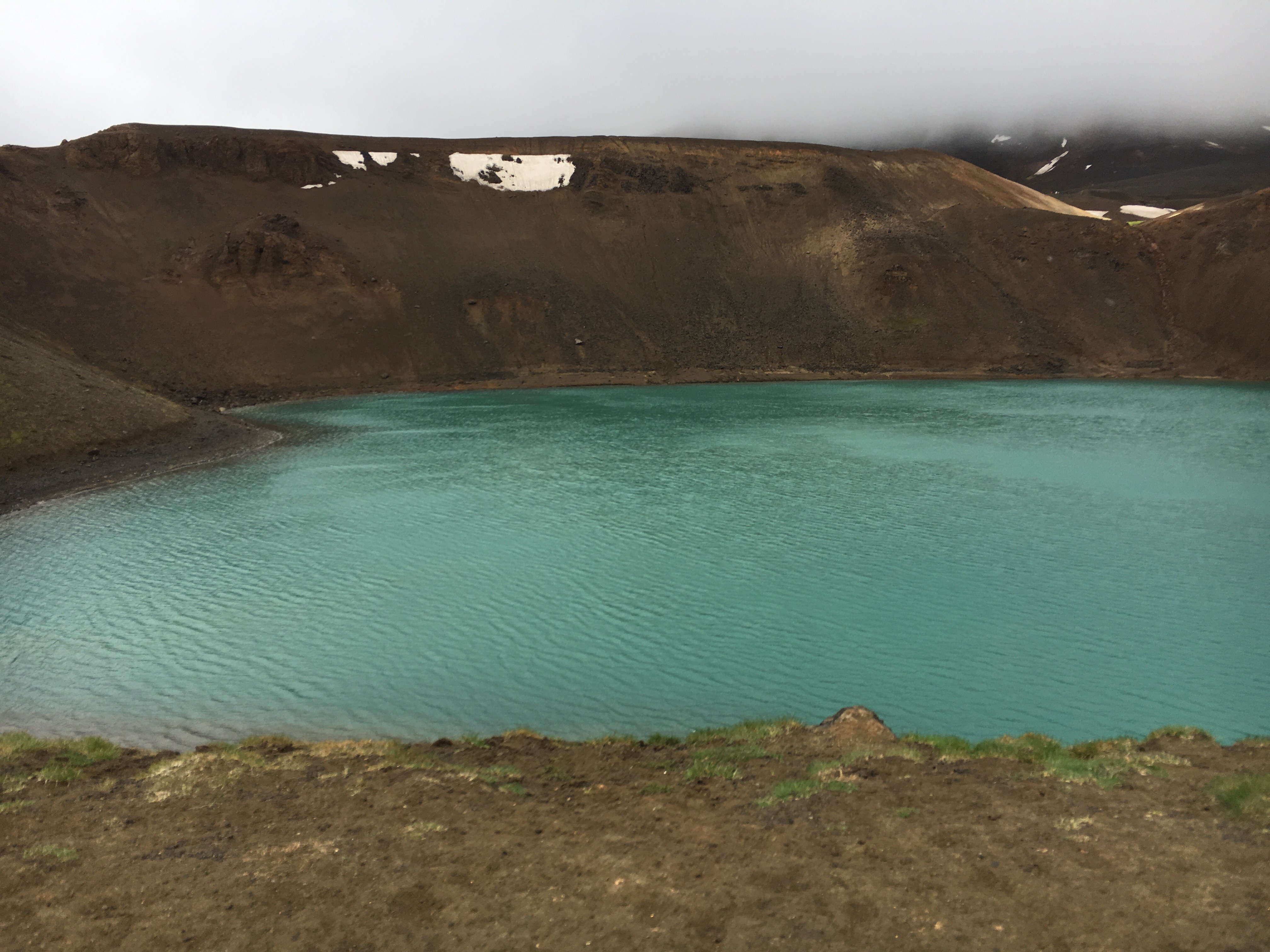 我們今天第一個的知名景點,是另外一個火口湖,Krafla 克拉夫拉火山。會先經過一個地熱發電廠 Krafla Power Plant,有很重的硫磺味。這邊也是天氣狀況不大好,幾乎所有的遊客都是衝下車,拍個照就馬上上車。