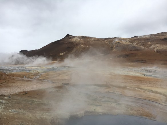 這個景點附近就是地熱谷Hverir。由於蒸氣從地底上冒出來,地勢又沒有這麼高,我們逛的時間比較長,不過還在下雨,真的很傷腦筋。