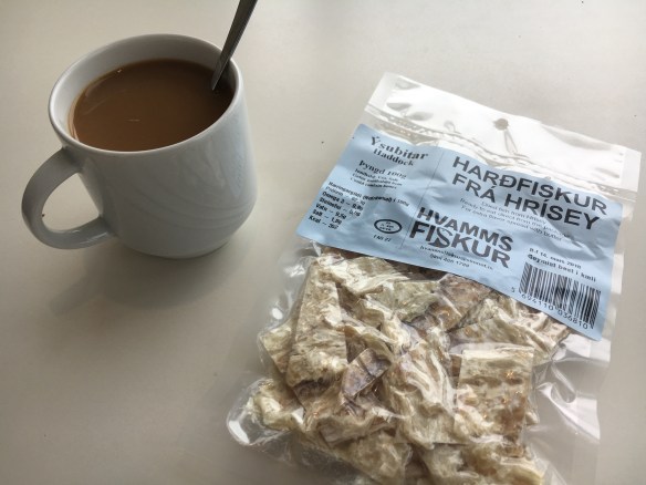 不過,我們還是在這邊喝了咖啡,順便試試這邊的鱈魚絲(雖然不知道這是什麼魚做的)。