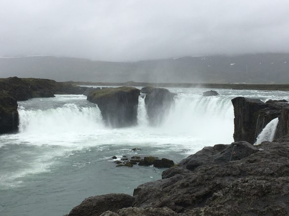 往Akureyri亞庫來利的路上,會經過眾神瀑布Goðafoss。很可惜,天氣條件還是只能讓我們衝衝下車拍個照。瀑布的名字,已經有國王、彩虹、惡魔、眾神了,冰島的瀑布還真不少。