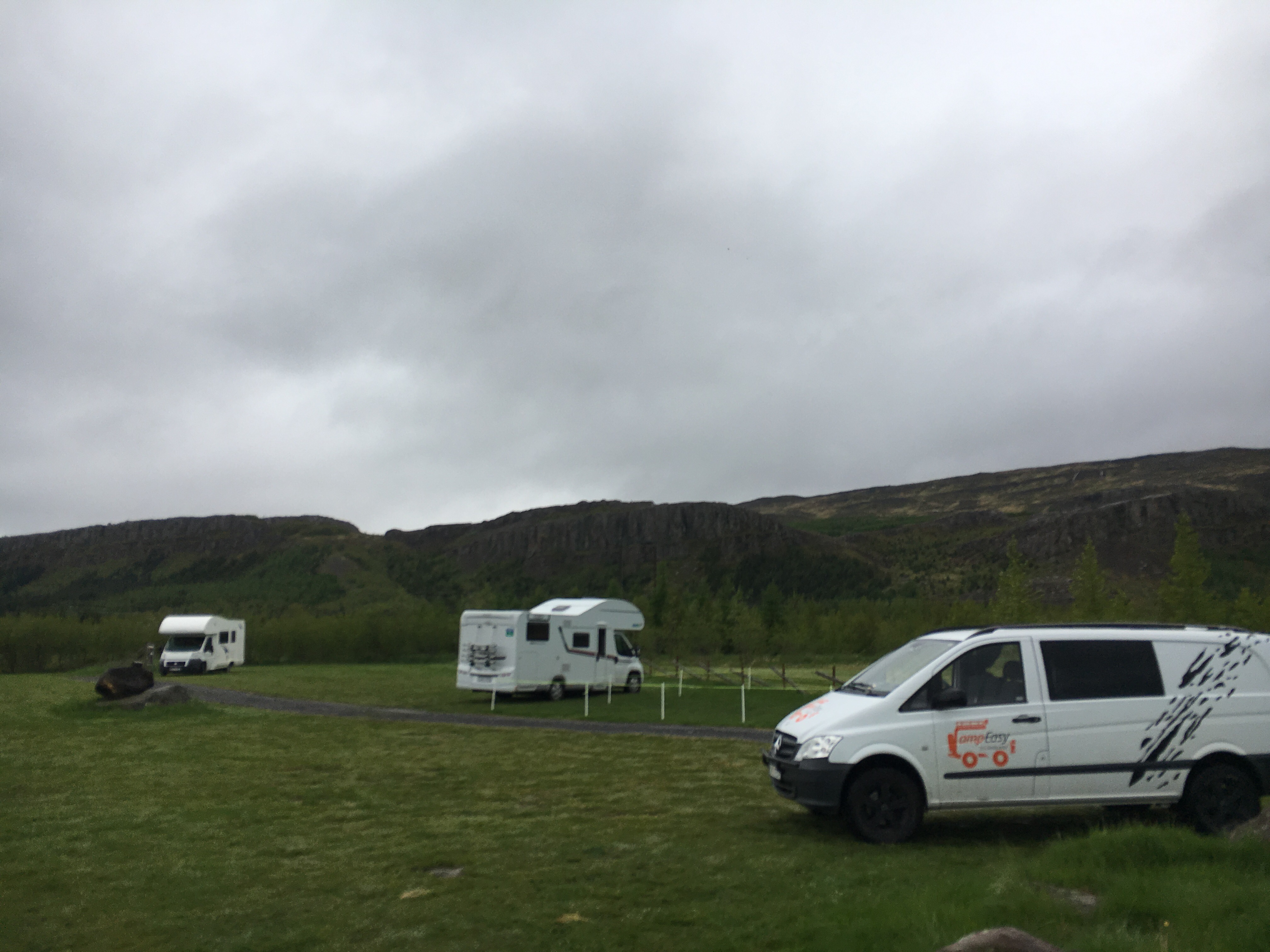 今天進入露營場的時間比較早,亞庫來利作為規模比較大的城市,有三個露營場。我們今天住露營場是Hamrar Campsite,相對於前幾天的露營場像是停車場一樣,這個露營場規模比較大,目前還只有3分之一開放。