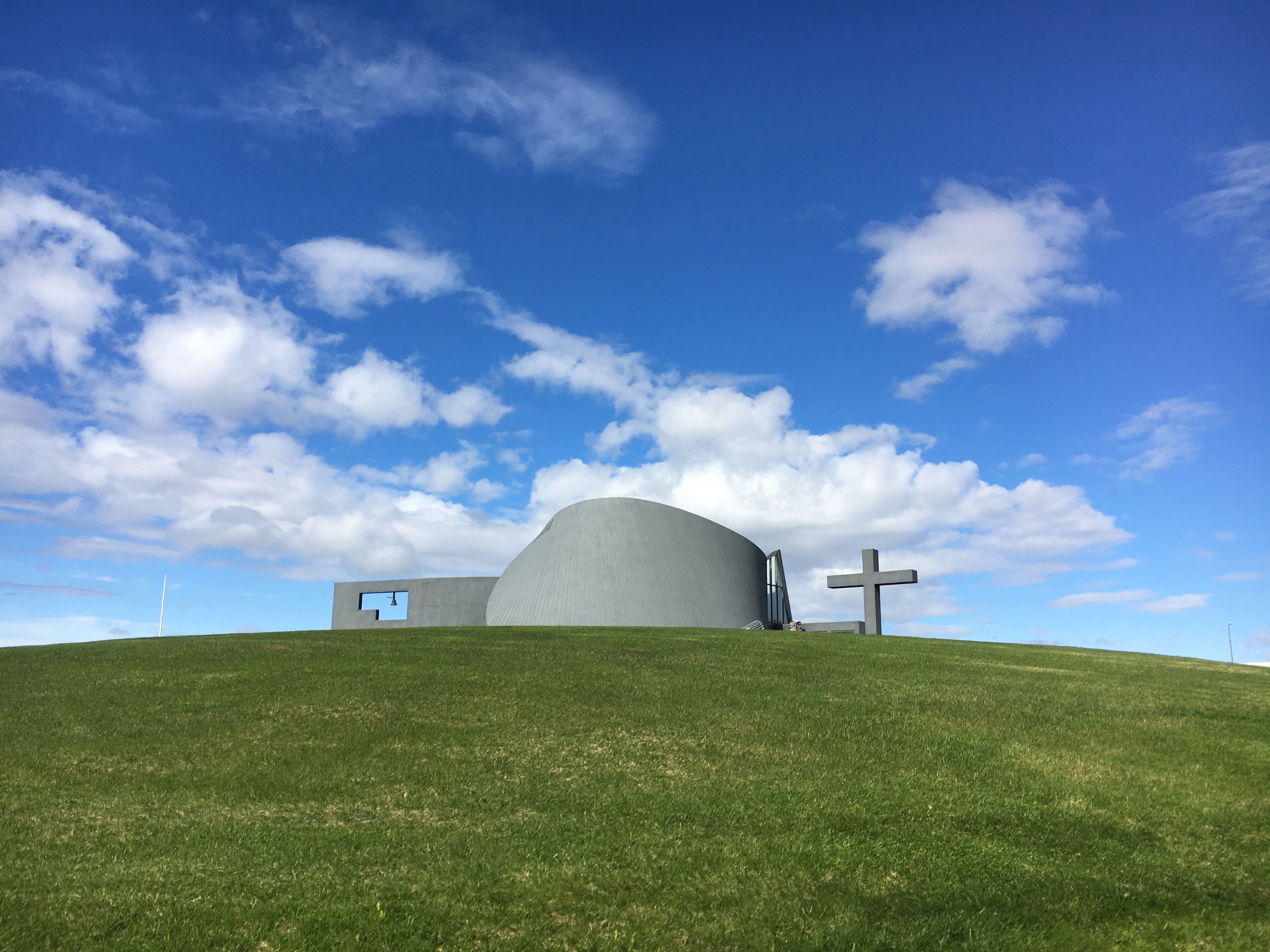 這邊有個有名的鯨魚教堂,蓋在一片草坪整理的非常好的山坡上,照相起來非常好看。