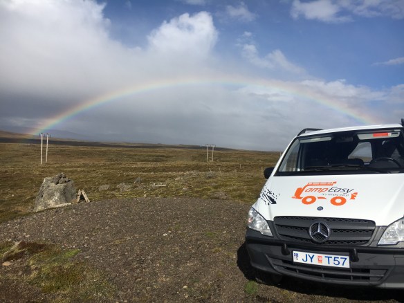 旁邊還有一個游泳池,也曾經有個念頭想去試試看。不過後來覺得冷風吹過來實在太冷,還是作罷了。離開Blönduós後,往今天的目的地布扎達呂爾Búðardalur前進。冰島的天氣多變,很快地又下了一場大雨。雖然「不是天晴就會有彩虹」,不過今天是有彩虹的。