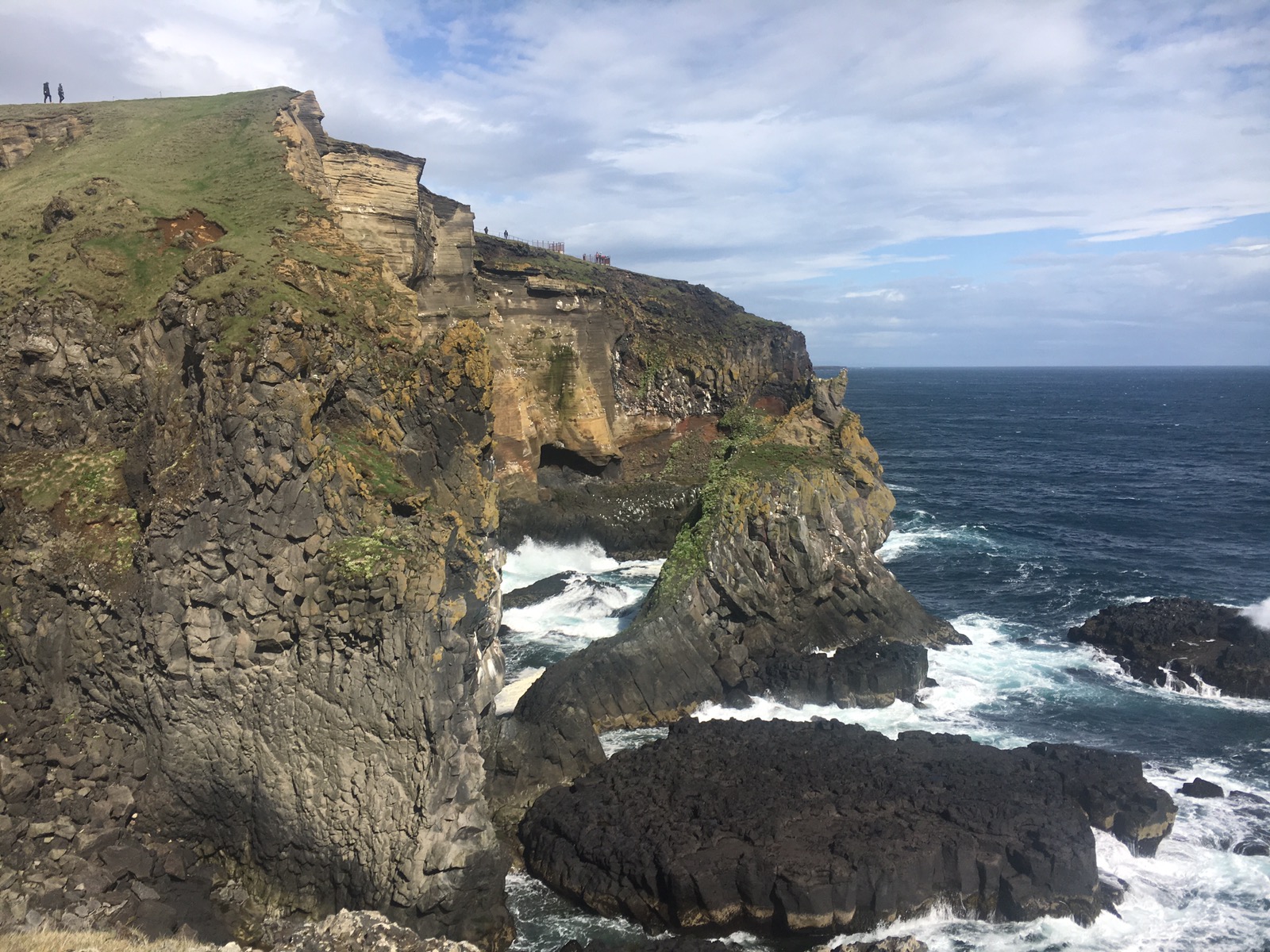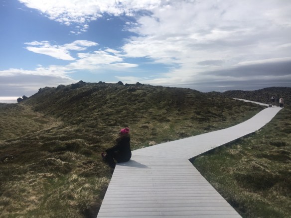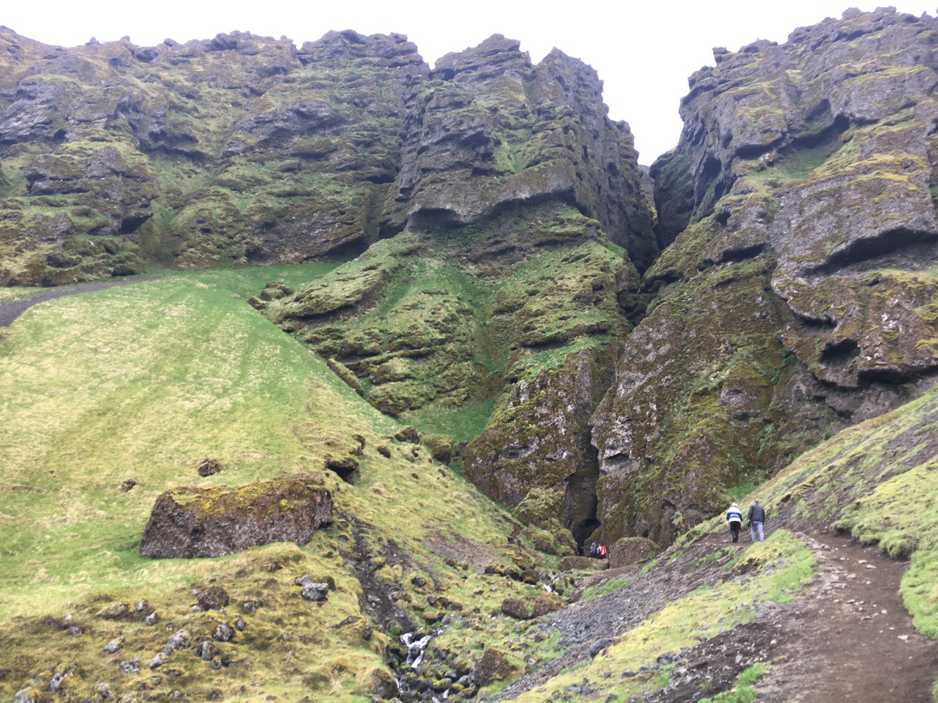 離開這個景點,下一個景點是Londrangar,俗稱的超級大斷崖。從停車場的這一端還不覺得這個斷崖很壯觀,我們從旁邊的步道走下去,在從草原上看上來,就發現這個斷崖真的很壯觀。