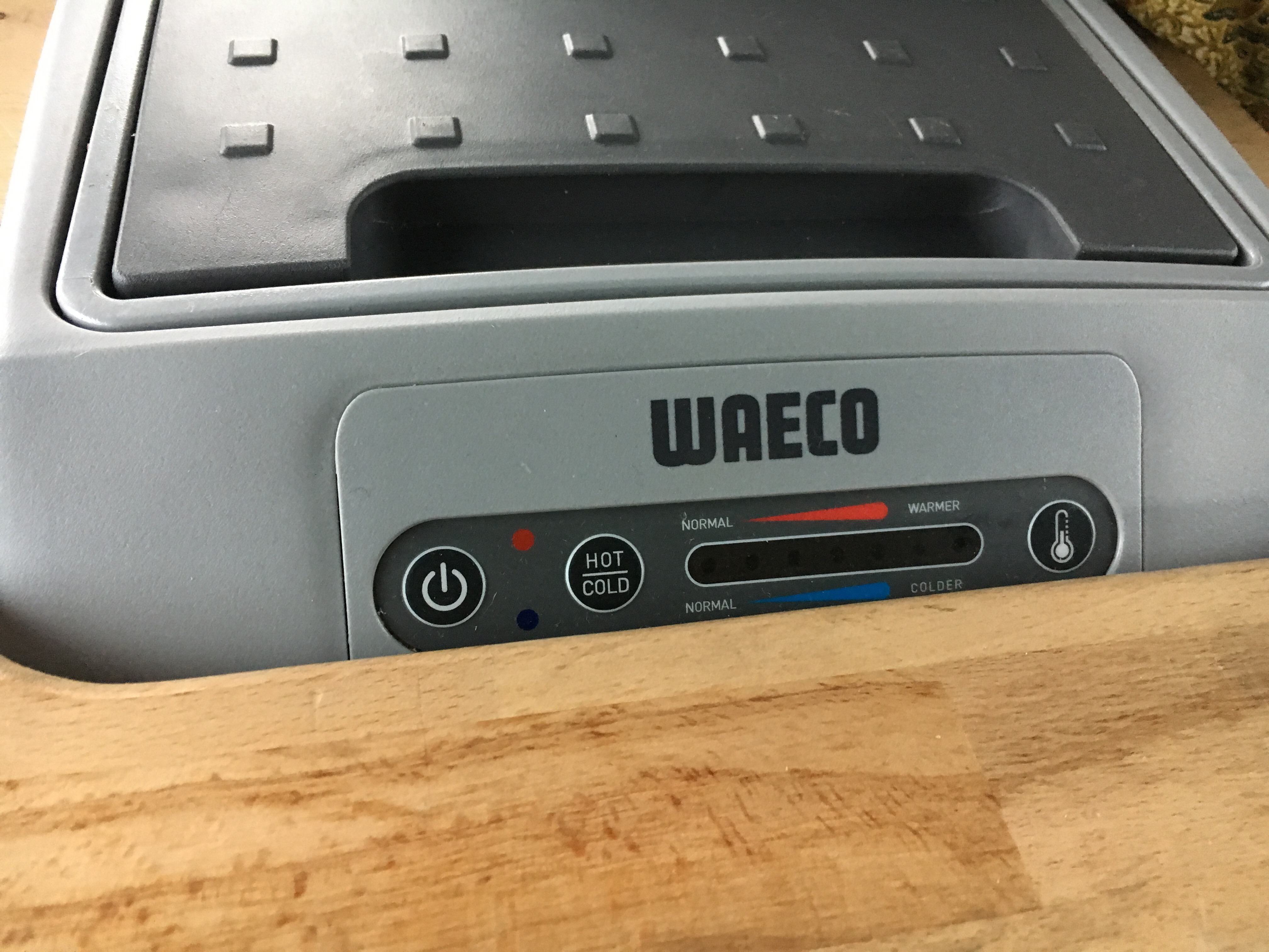 除了桌子之外,這個露營車也附上了冰箱,是在台灣的露營車店貴鬆鬆的WAECO。在經過一陣子的使用之後,發現這個牌子的保冷效果還不錯,而且即便裡面同時放冷藏與冷凍品,冷凍品例如海鮮也不會因此而滴水。