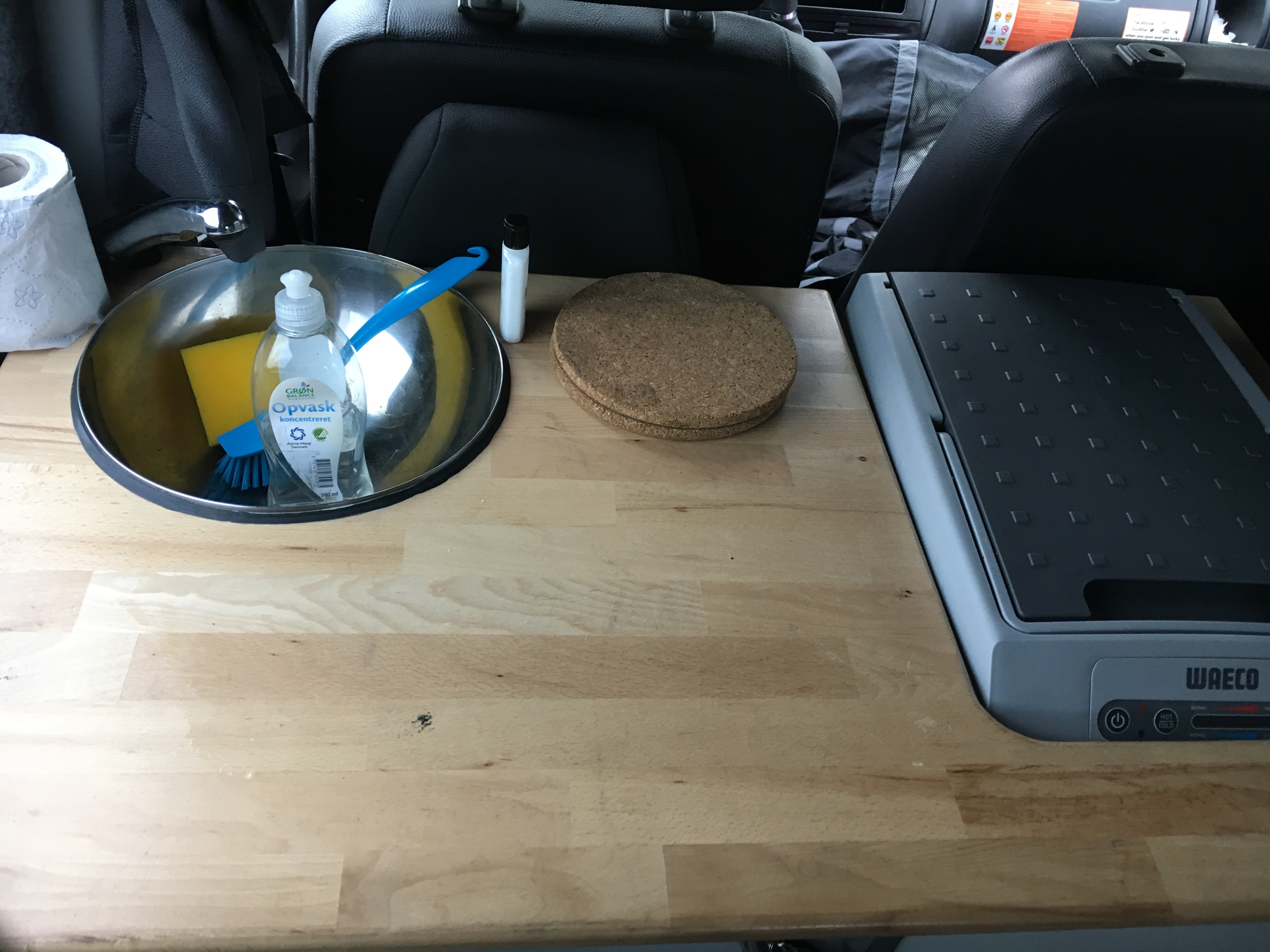 桌子是我們覺得很實用的裝備。本來以為大多數的時間,我們會在廚房或戶外做菜,想不到冰島的廚房設備沒有紐西蘭那麼好,戶外的用餐環境也沒有日本那麼好。大部分的時間我們還是跟加拿大一樣在車上做菜在車上吃飯。